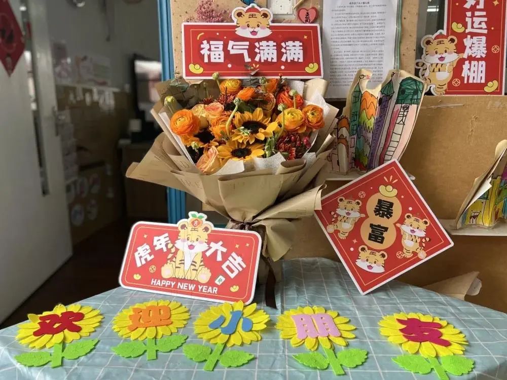 此外,在教师们精心准备下,园所环境整洁温馨、优美雅致,丰富多样的室外主题墙,各类精美的小挂饰,让每个教室充满喜庆氛围。