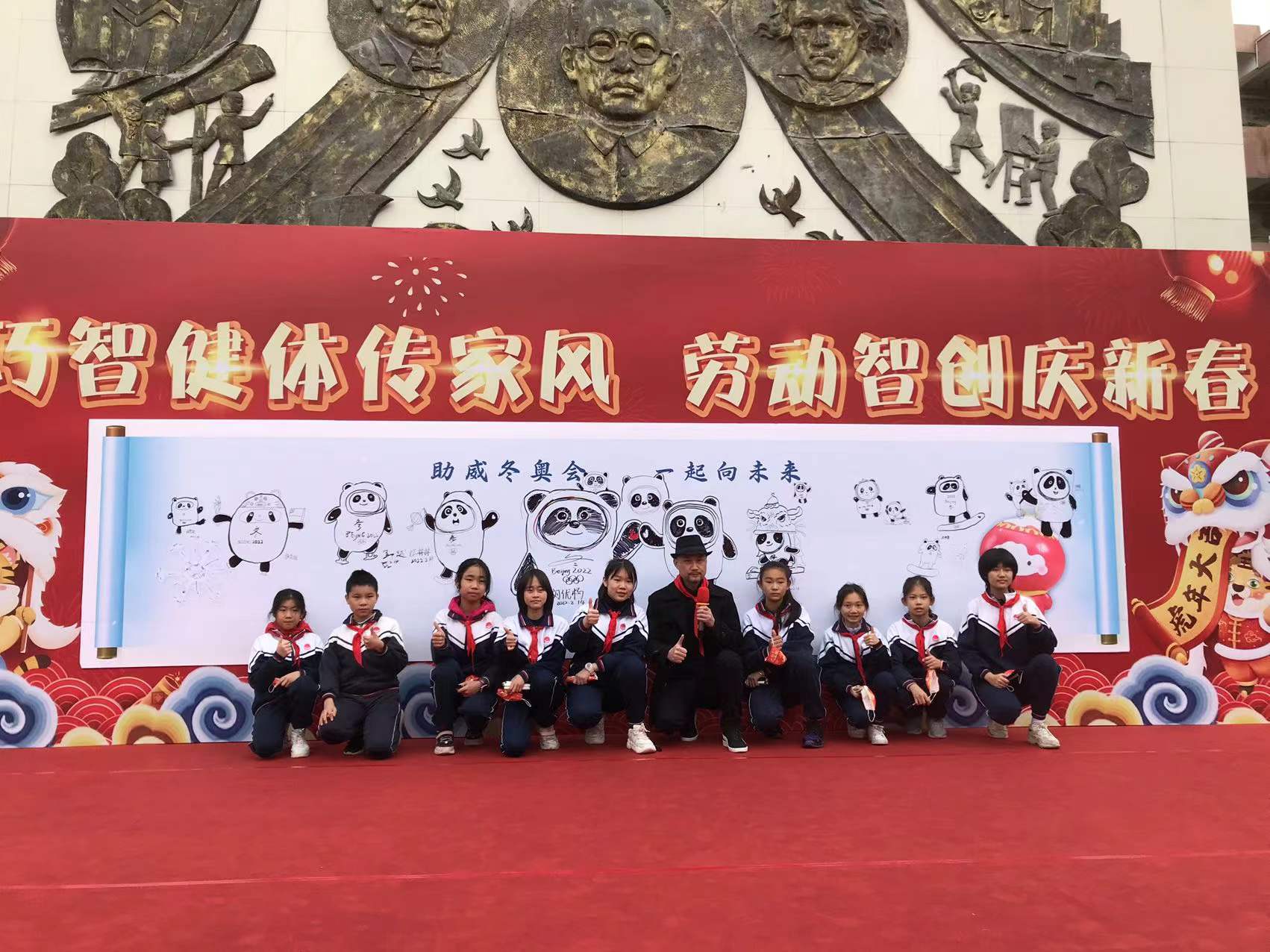 昌岗中路小学:“冰墩墩”设计师现身校园,师生千人同画“冰墩墩”