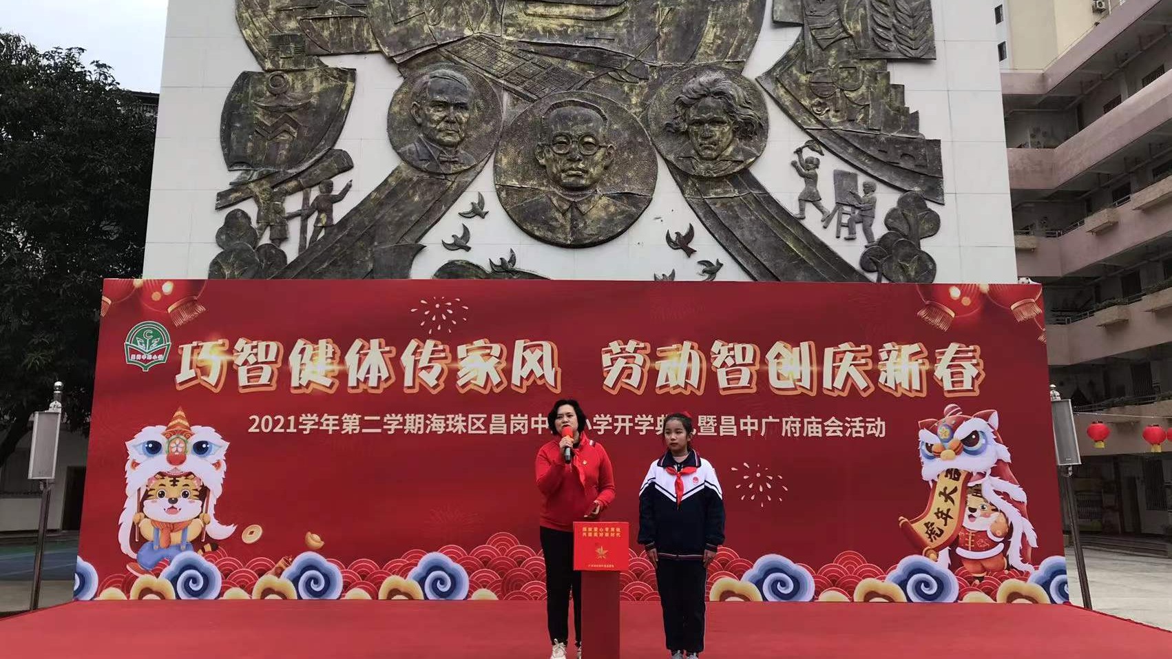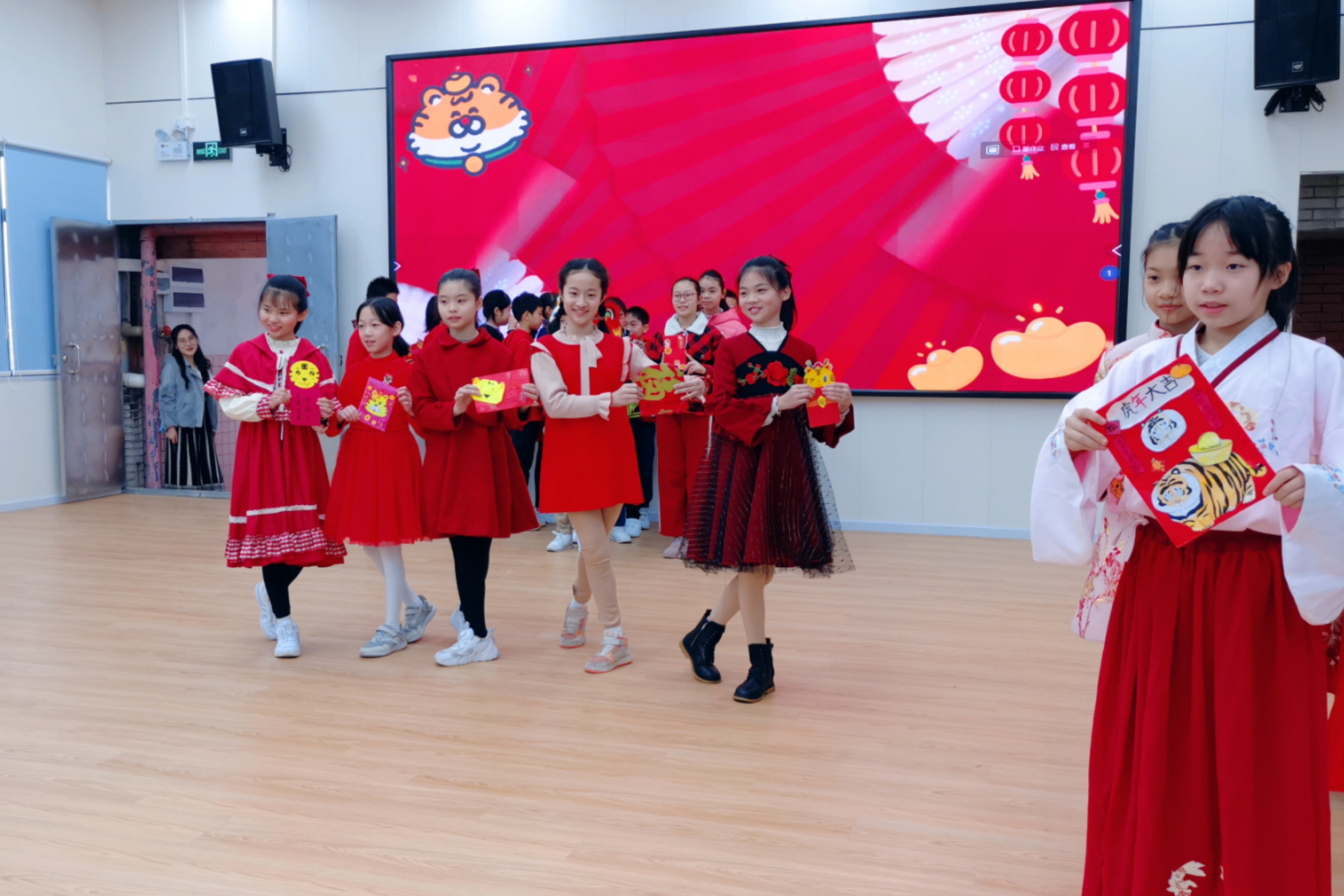 培正小学则举办了“班级文化谱新篇,弘扬传统展风采”开学典礼。开学典礼上,同学们展示在寒假期间开展的春节传统习俗活动成果及运动项目。此外,同学们还惊喜地收到了一份来自学校的新春红包,同学们相互拜年,互道新年新愿景,互相分享拿到的专属新春利是。