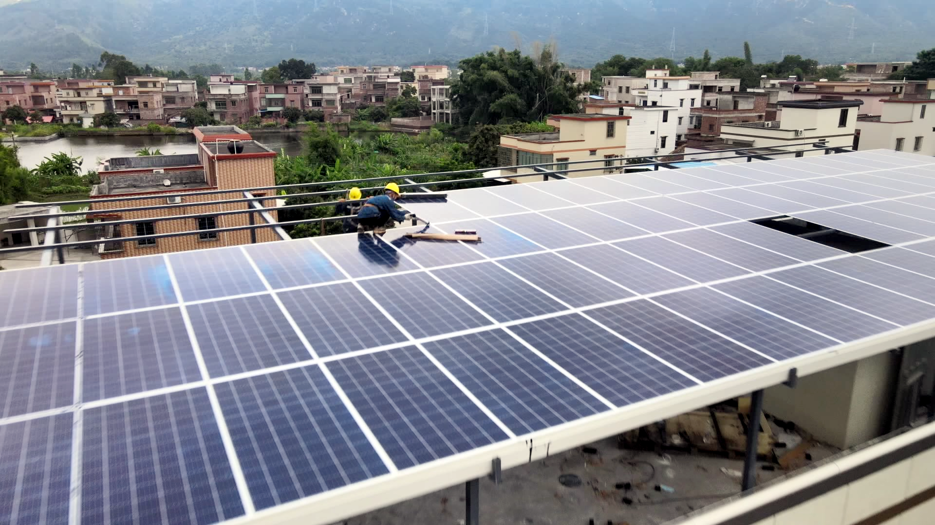 从新马村村委会楼顶向外望去,一排排屋顶光伏鳞次栉比,颇具规模。杨振贤笑着说,村委会楼顶的光伏项目是最早建成的,已成为村里人的“观光打卡地”,大家都过来看、过来感受光伏板的隔热效果,“夏天最热的时候,摸一下地板,手都是凉的。”