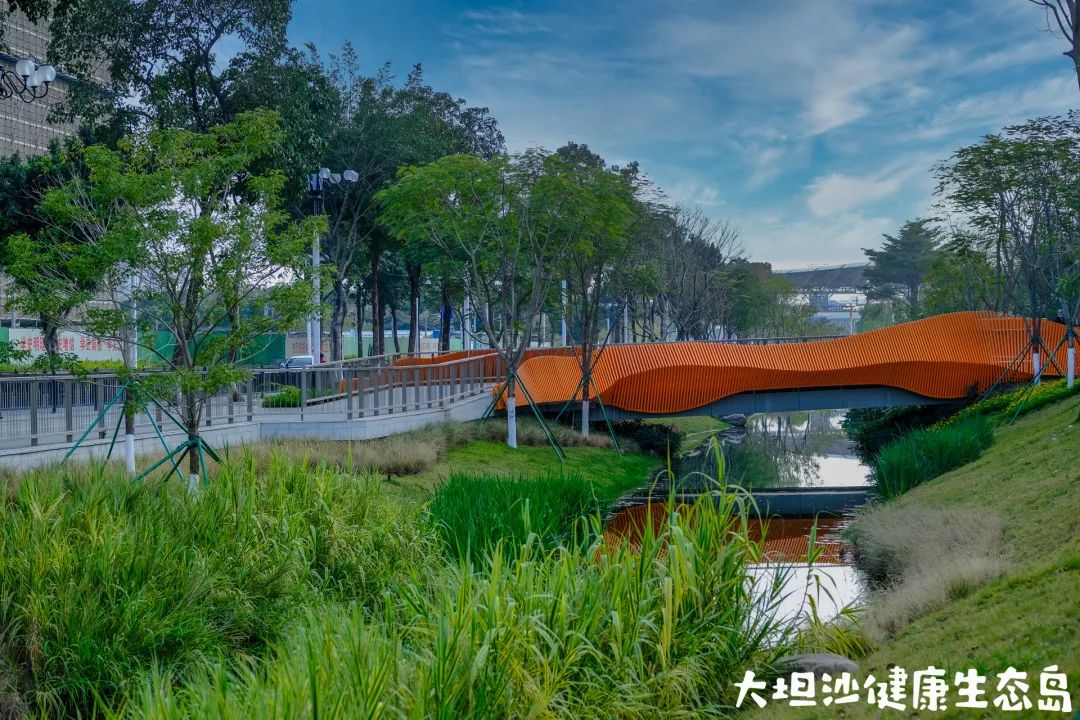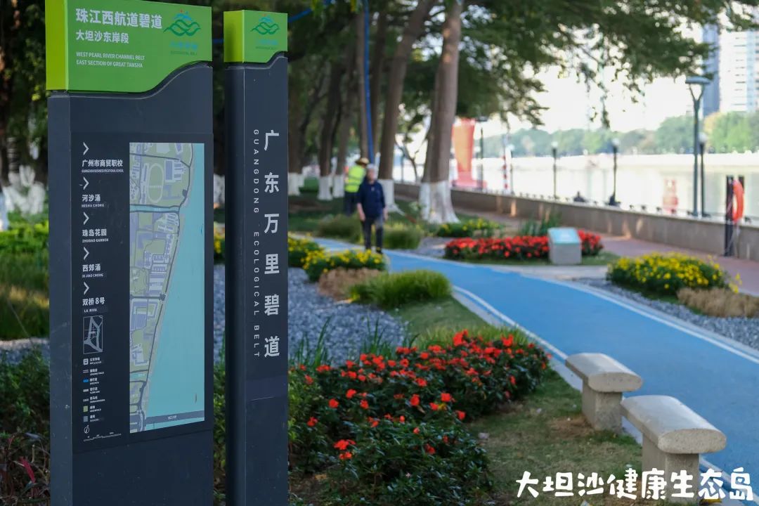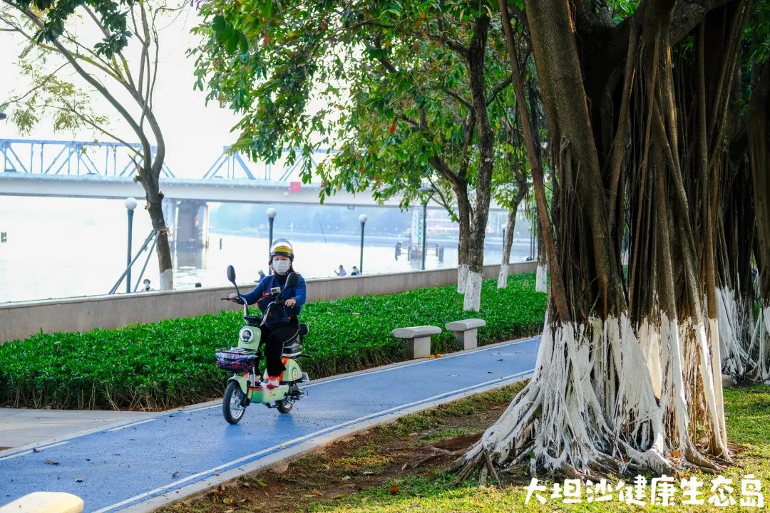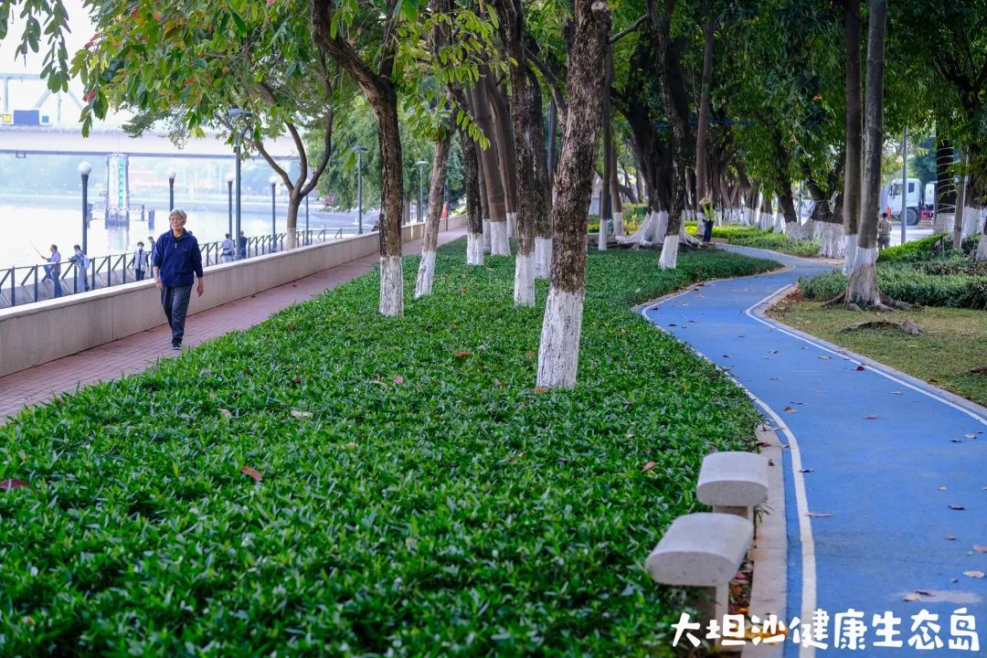 漫步大坦沙的东岸段碧道,清幽的生态树池,错落有致的园林造景,崭新的蓝色骑行道在沿路两旁绿植的映衬下格外醒目。