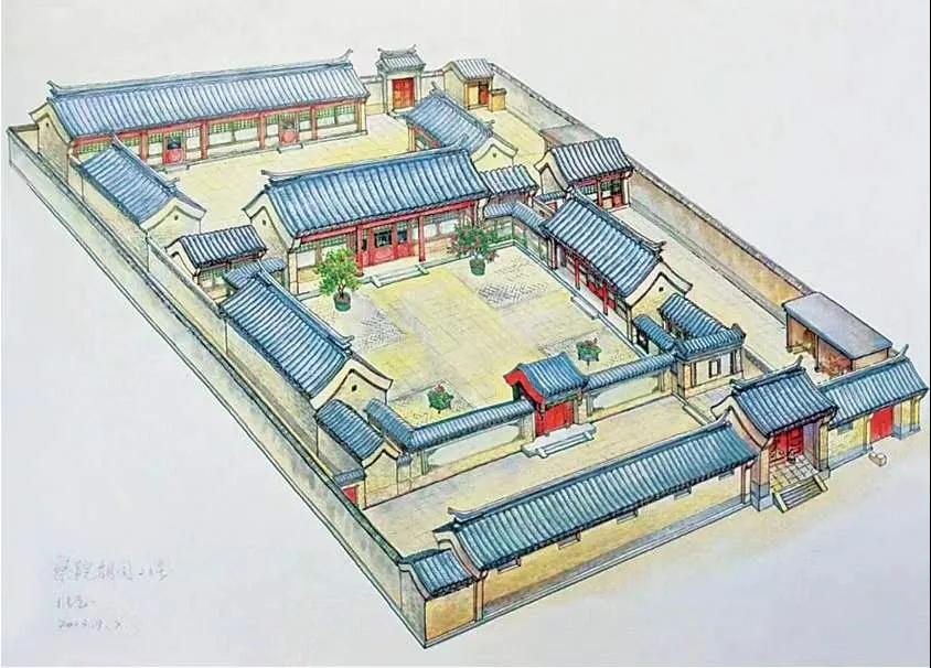 察院老宅复原图。此图系张维志先生根据叶嘉莹先生和笔者的回忆口述绘制(新书插图翻拍)