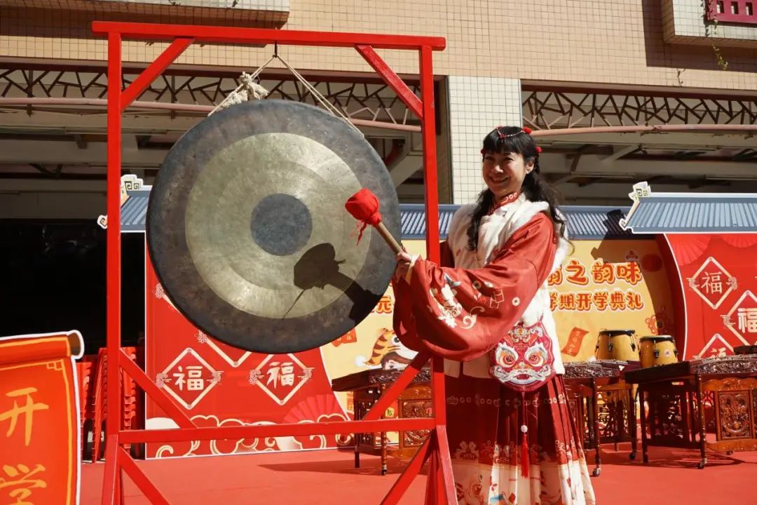 现场,学校敲击乐团以《龙腾虎跃》开启了仪式的序幕。紧接着,校长毕小卫一句响亮的“开学了!”后,敲响了大锣,全校师生掌声热烈。敲锣明智仪式后,民乐团的同学们以一曲积极向上的《步步高》与台下的同学们一起互动,乐声、掌声让现场掌声不断,让人回味无穷。