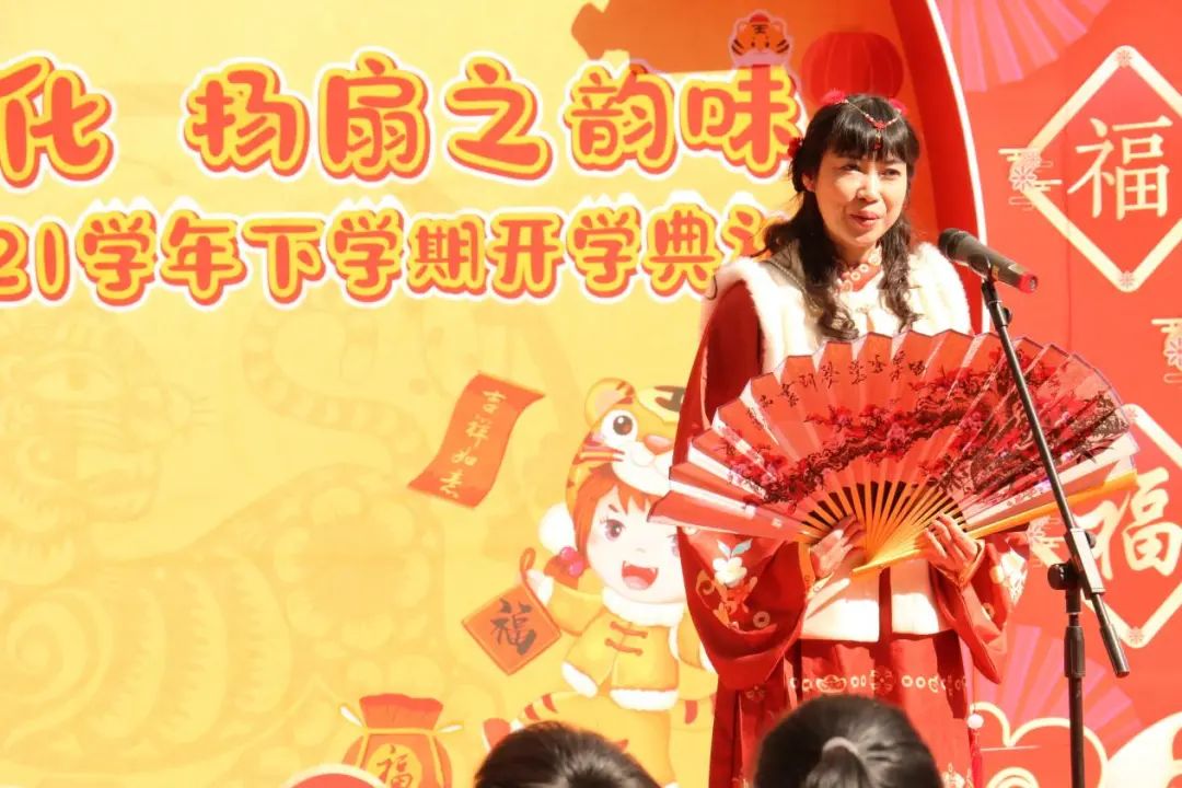 传扬汉文化,我们都是参与者。同学们除了穿着、打扮外,更是准备了形式丰富多彩,精彩纷呈的节目,或是激昂诵读,或是婉转低吟,或是翩翩起舞,演绎经典。一年1班节目《说扇子》、三年1班节目《美好祝福借扇说》、四年2班节目《梅兰竹菊颂》、五年2班节目《迎春送福》、五年3班节目《扇的祝福》、六年1班节目《新春的祝福》、六年2班节目《彩扇说瑞虎》……表演的同学们都手拿着他们精心绘制的扇子,或是朗诵,或是演唱,给老师和同学们送上一场传统文化的盛宴。