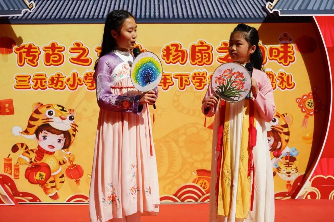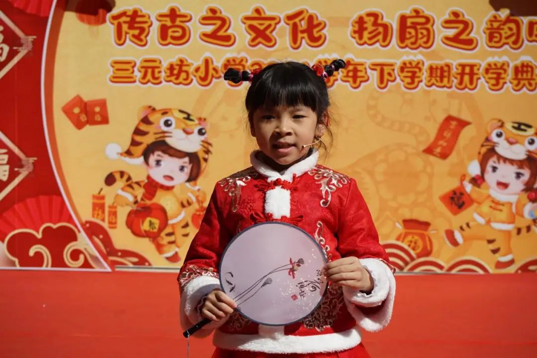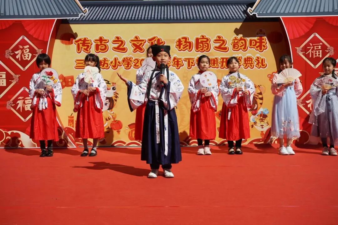2月14日,三元坊小学的师生穿着漂亮的汉服回到美丽的校园。为加强中华优秀传统文化教育,让青少年全面了解中华民族的历史传统,三元坊小学开学礼以“传古之文化 扬扇之韵味”为题开展活动。