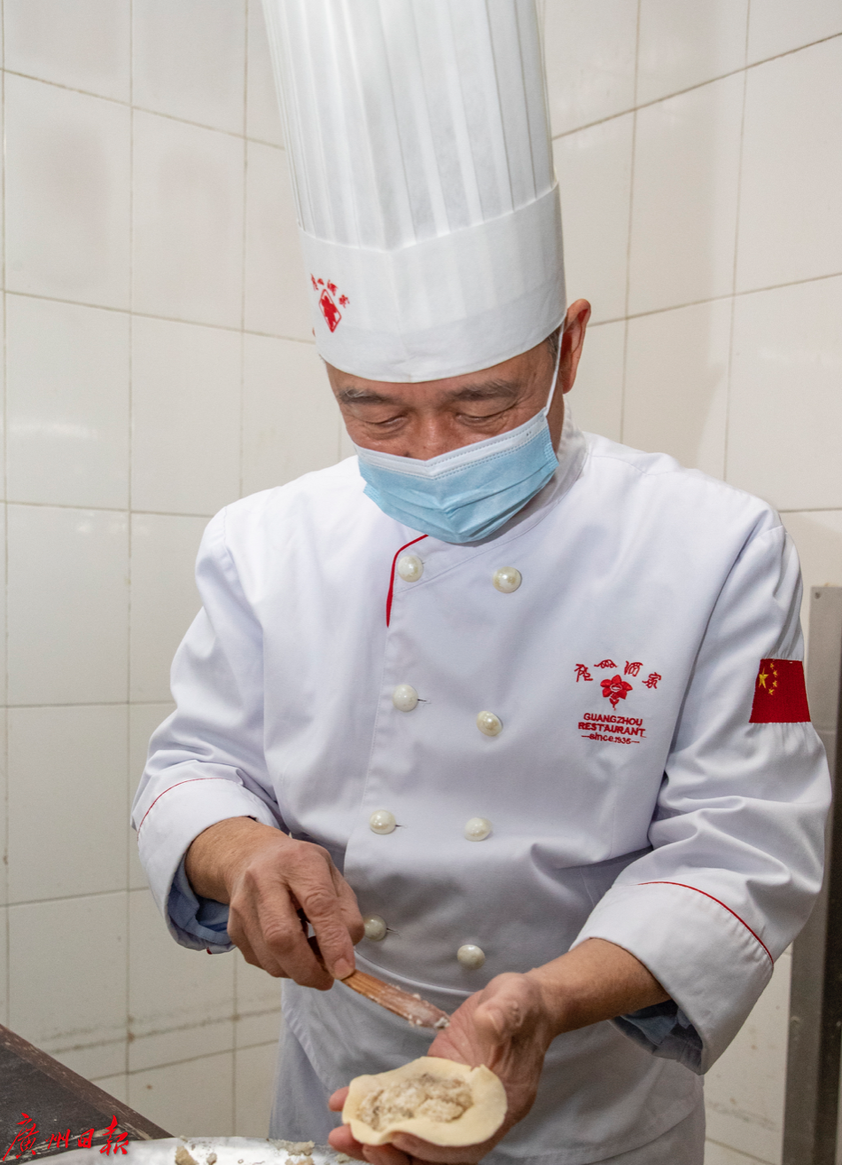1970年1月,还是16岁毛头小子的董师傅进入广州酒家厨房工作。肯捱、勤于学习,善于思考,他飞跃式发展。多年来凌晨2点开工,日班接夜班连轴转,他从无怨言;点心师的不同新岗位他都乐于尝试;他喜欢与人交流,学习别人的新技能,融会贯通创造新品种,改良旧有品种,真真“敢为人先”。他做出来的“牛肚白果粥”当时风靡广州,牛肚的爽滑效果,至今甚少餐厅能复刻。出自他手的烤鸭面皮,即便是复热都依旧能保持刚出炉时的最佳口感;他曾与团队代表广州酒家、代表中国多次参加国内和国际烹饪赛事并获得优异名次,被称为“参赛专业户”。如果说起初是误打误撞进入餐饮行业,那么50年的付出与成绩单,就是他对粤式点心师这份工作的执着与热爱的最好注脚。