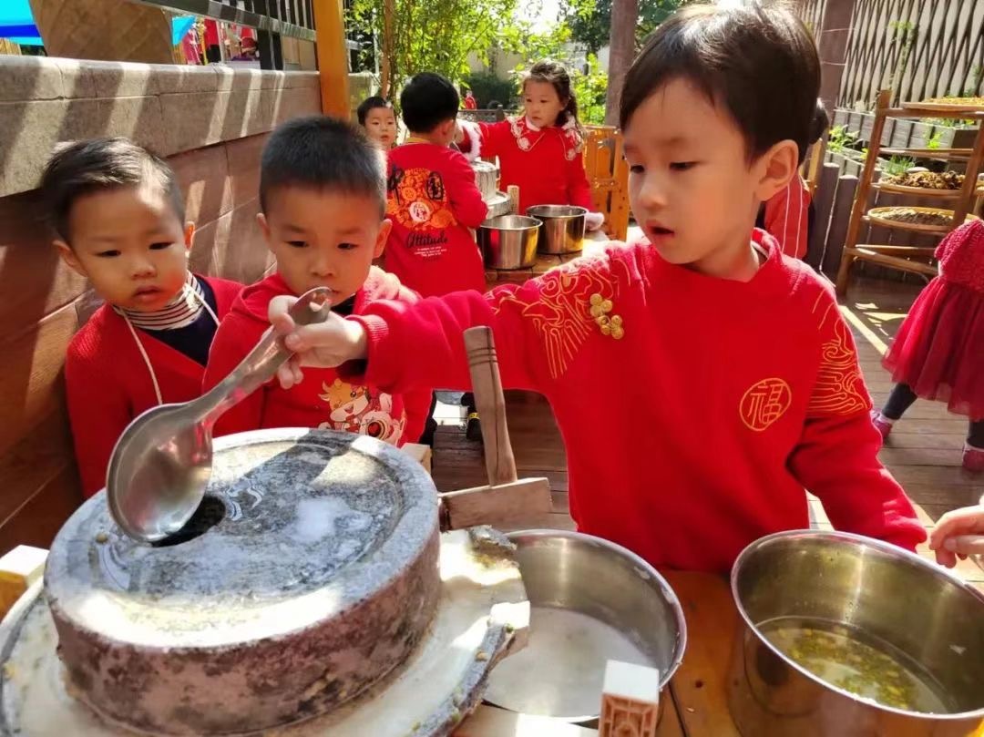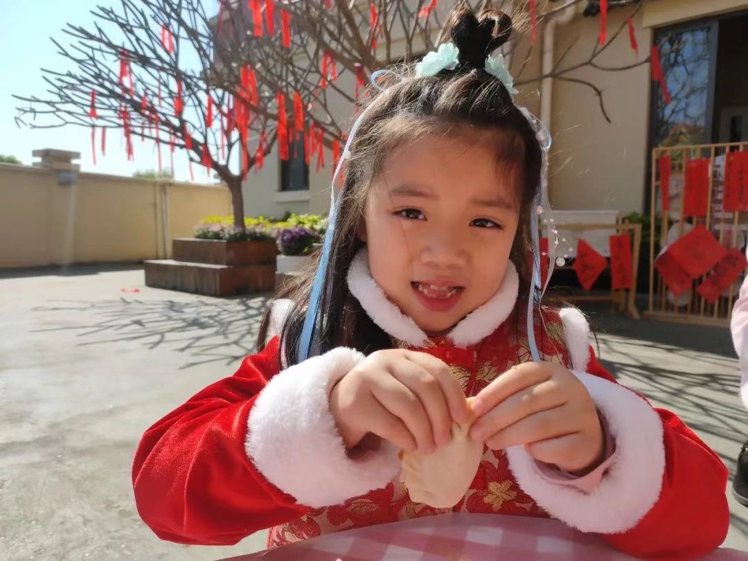 虎头对联、甜蜜糖葫芦、织女刺绣、幸运剪纸、编织幸福、水墨丹青、五谷研磨、跳竹竿舞、皮影剧院……本次精彩纷呈的元宵节主题活动,让孩子们近距离感受到节日的浓郁氛围,在游戏中了解着节日习俗,增强了他们对中国传统文化的热爱,进一步激发了民族自豪感。