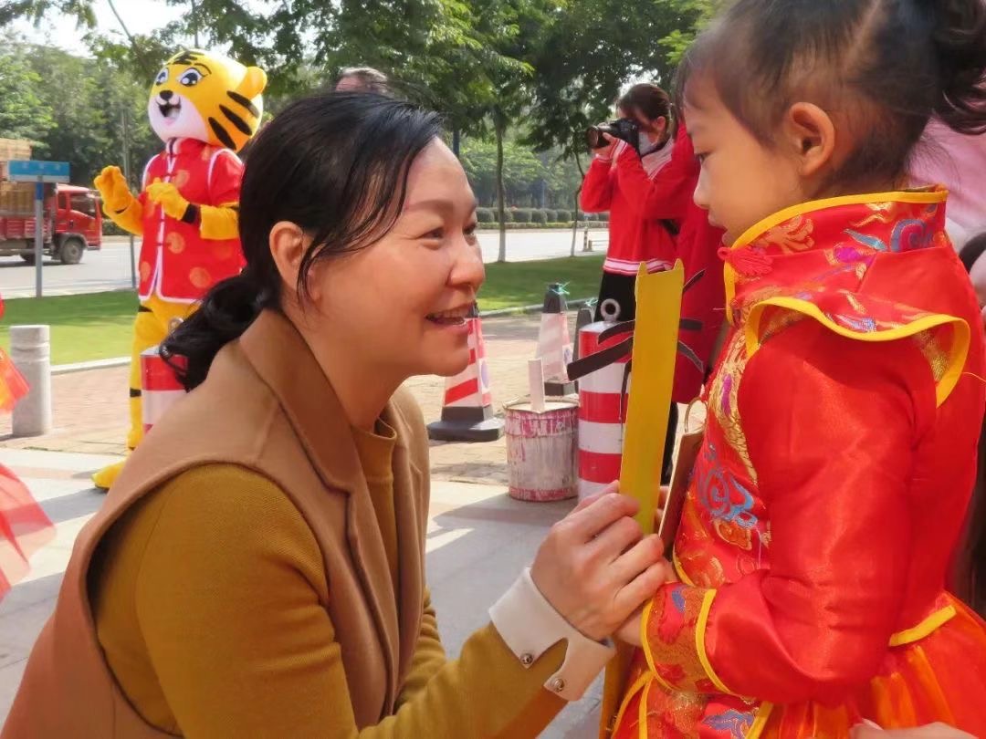番禺区北城幼儿园园长容瑞英带队来到珑翠幼儿园分园,向教职员工、孩子们给予节日慰问,并参与体验了珑翠幼儿园的元宵活动。