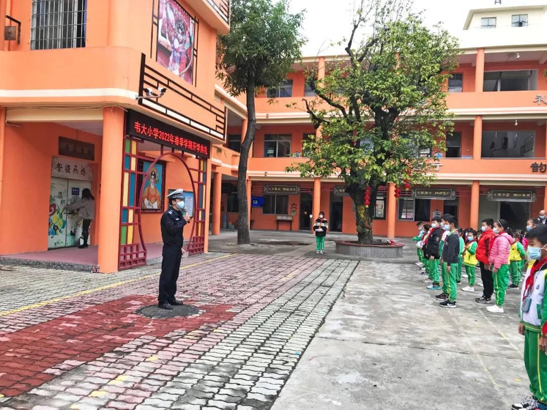 升旗仪式后,来自广州市公安局番禺分局交警大队(九中队)的警官为同学们带来法治安全教育。随后,各班组织学生开展开学第一课。