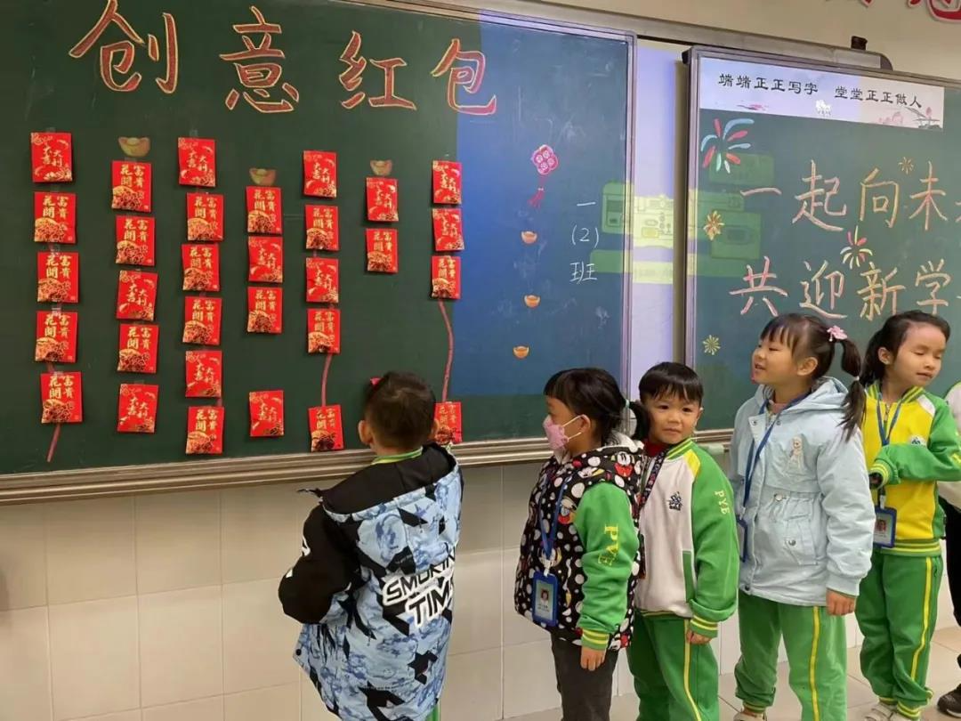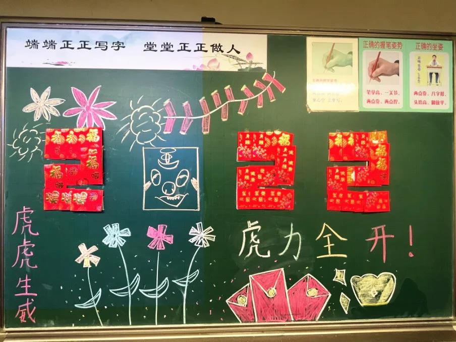 黑板上的欢迎语、精心布置的窗花、班级门口的对联,满满都是老师对同学们的欢迎和祝福。