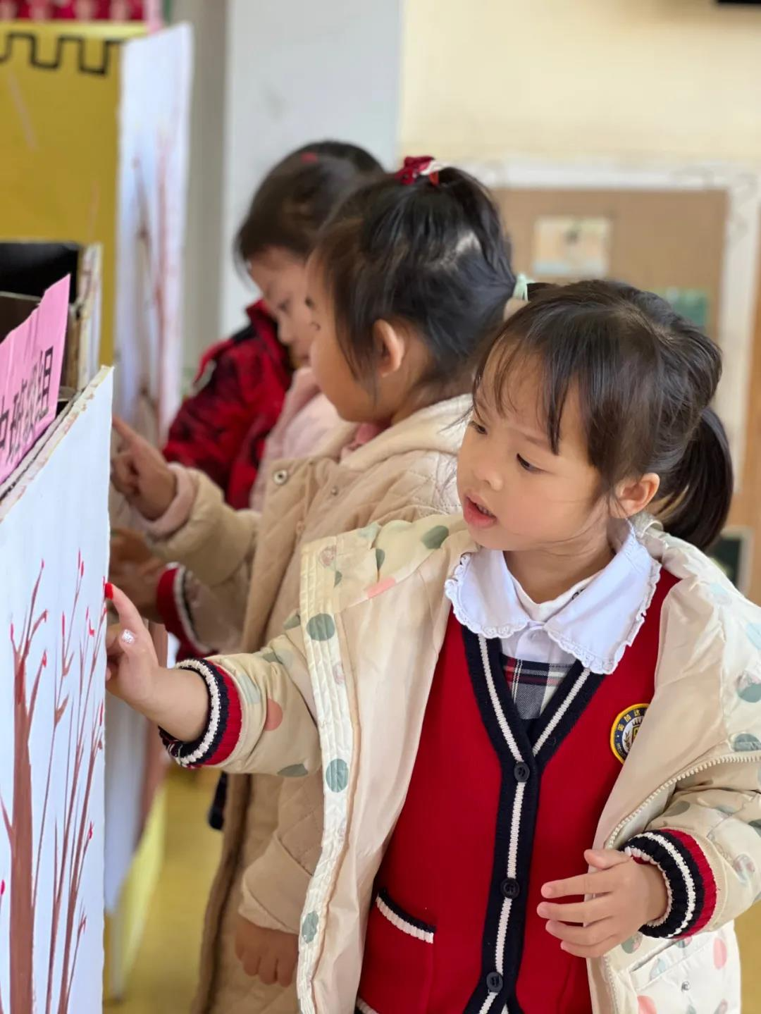 园长“妈妈”给孩子派发红包,孩子们在“启智树”上按下小手印。