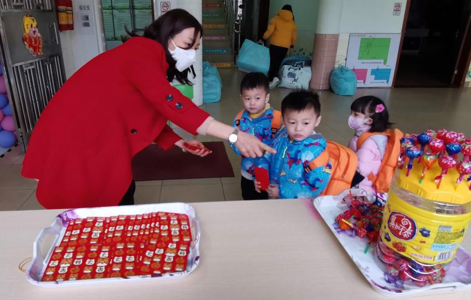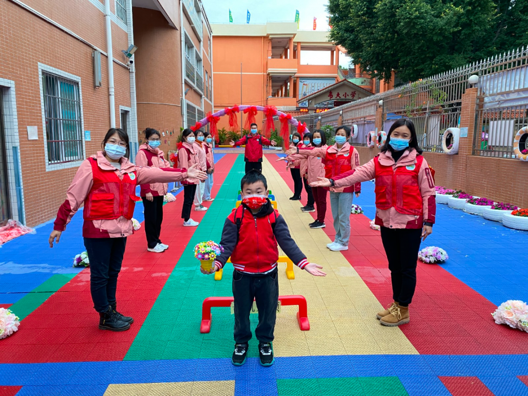 红红火火送祝福,欢欢喜喜来上学。老师们一声声亲切的早上好,一张张灿烂的笑脸、有爱的互动,温暖着每个孩子的心。