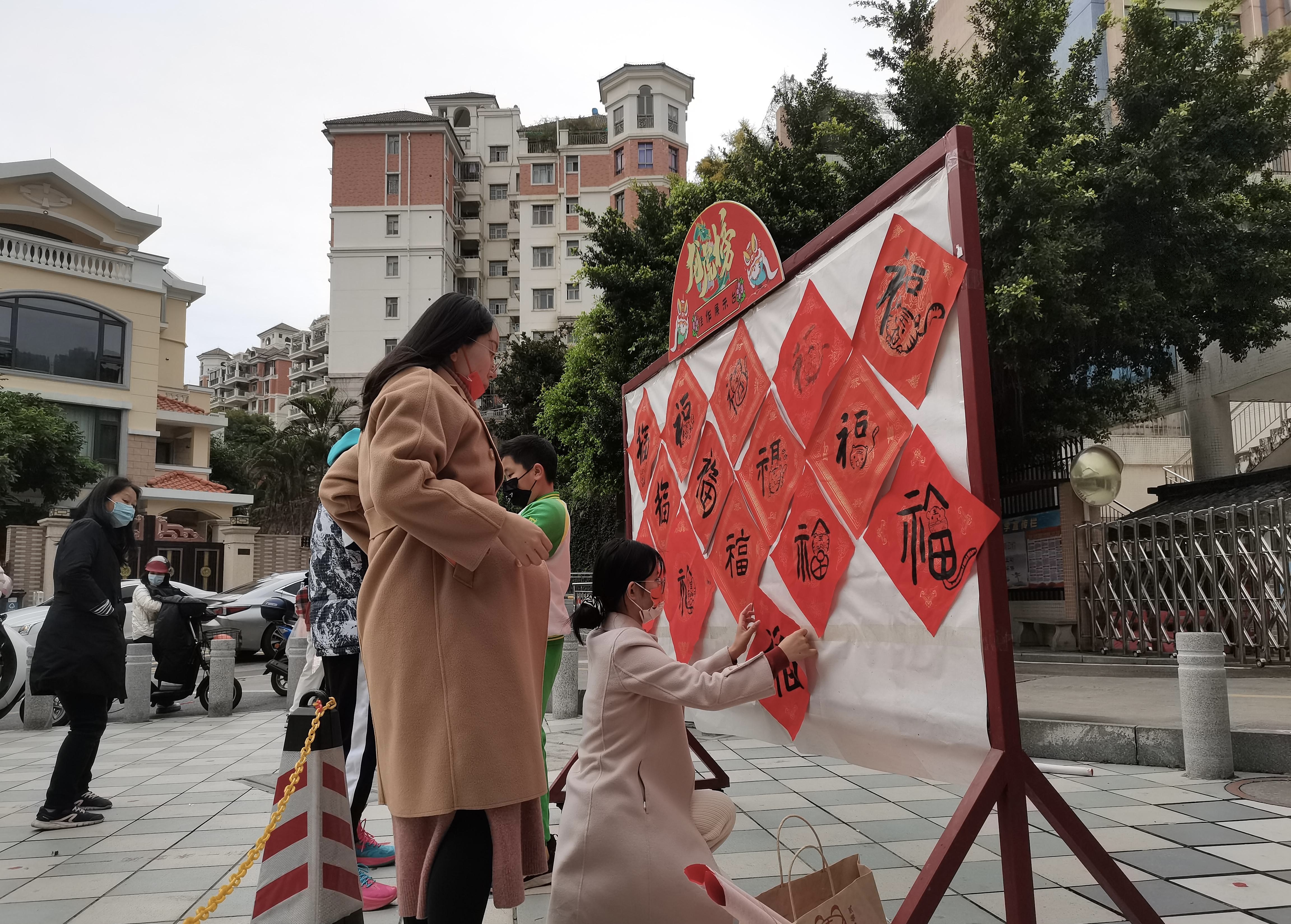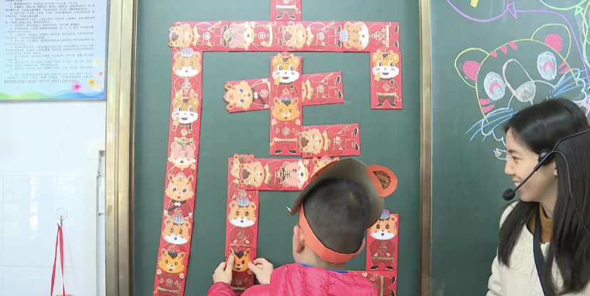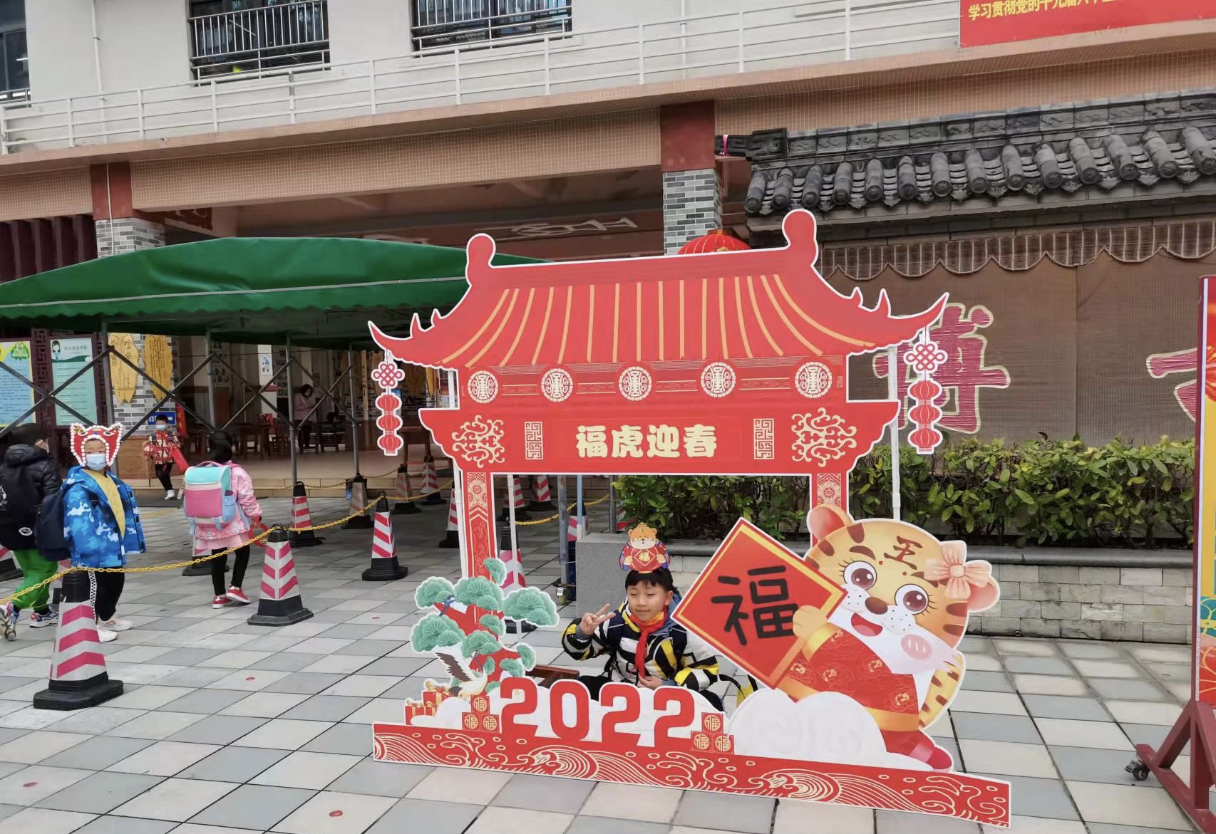 贴福字,戴“虎”头饰,讲“虎”故事,拍“虎”照,抽红包;唱国歌,看冬奥,做手势操,送祝福……金虎纳福跃泰春,学子迎新勇攀峰。