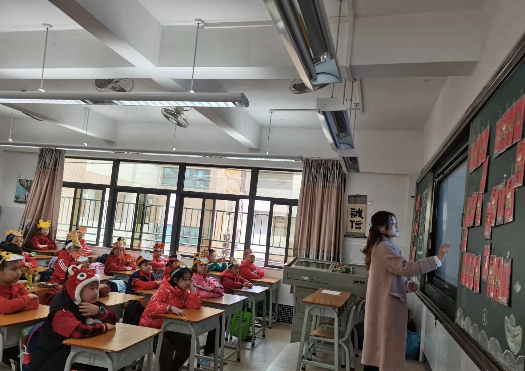 开学礼高潮部分莫过于各班举行的开学仪式活动了。首先,各班老师对虎虎生威寒假活动进行总结,同时展示部分学生作品。