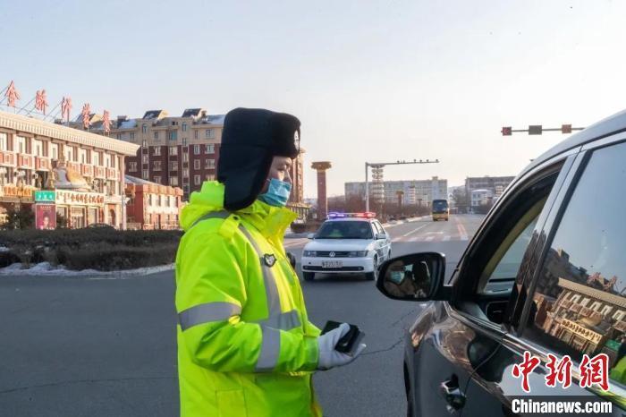 图为公安民警对过往车辆进行检查。 满洲里市公安局供图