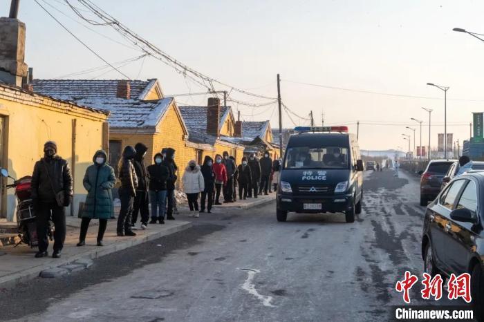 图为公安民警维持核酸检测现场秩序。 满洲里市公安局供图