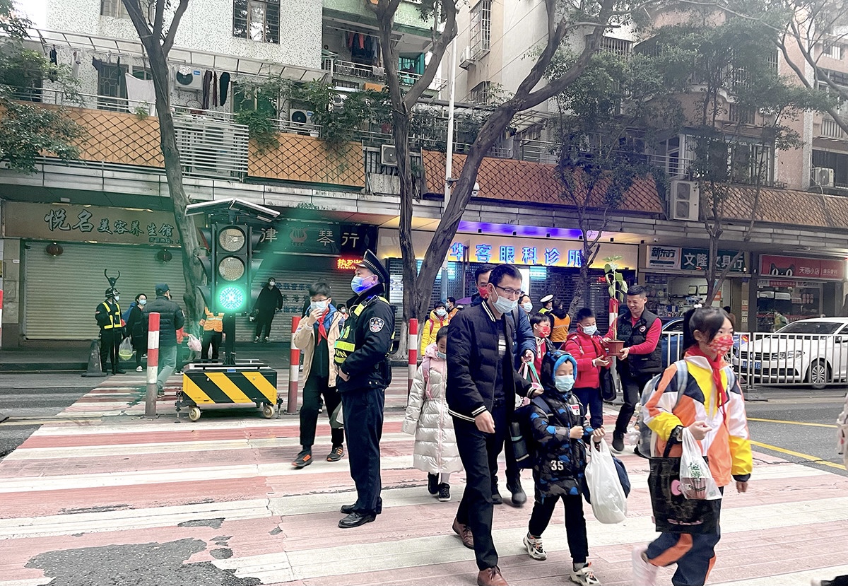 同时,番禺交警大队各分片领导和各中队领导靠前指挥,到各学校进行检查和督导,进一步落实责任。在番禺交警的有序疏导下,开学首日早高峰时段,全区交通秩序平稳有序,未出现严重拥堵情况。