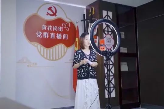 水荫南社区党委书记高兰正对辖内党员干部进行线上党课直播(黄花岗街水荫南社区党建宣传片截图)