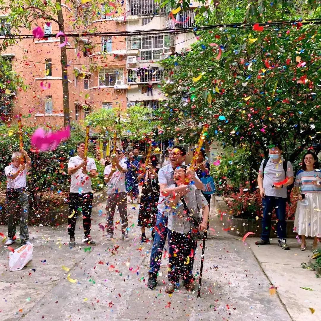 2021年4月,水荫南34号大院内的天河路27号、27号之一的加装电梯项目正式进场施工,居民代表欢快地进行庆祝仪式活动。(本公众号资料图片)