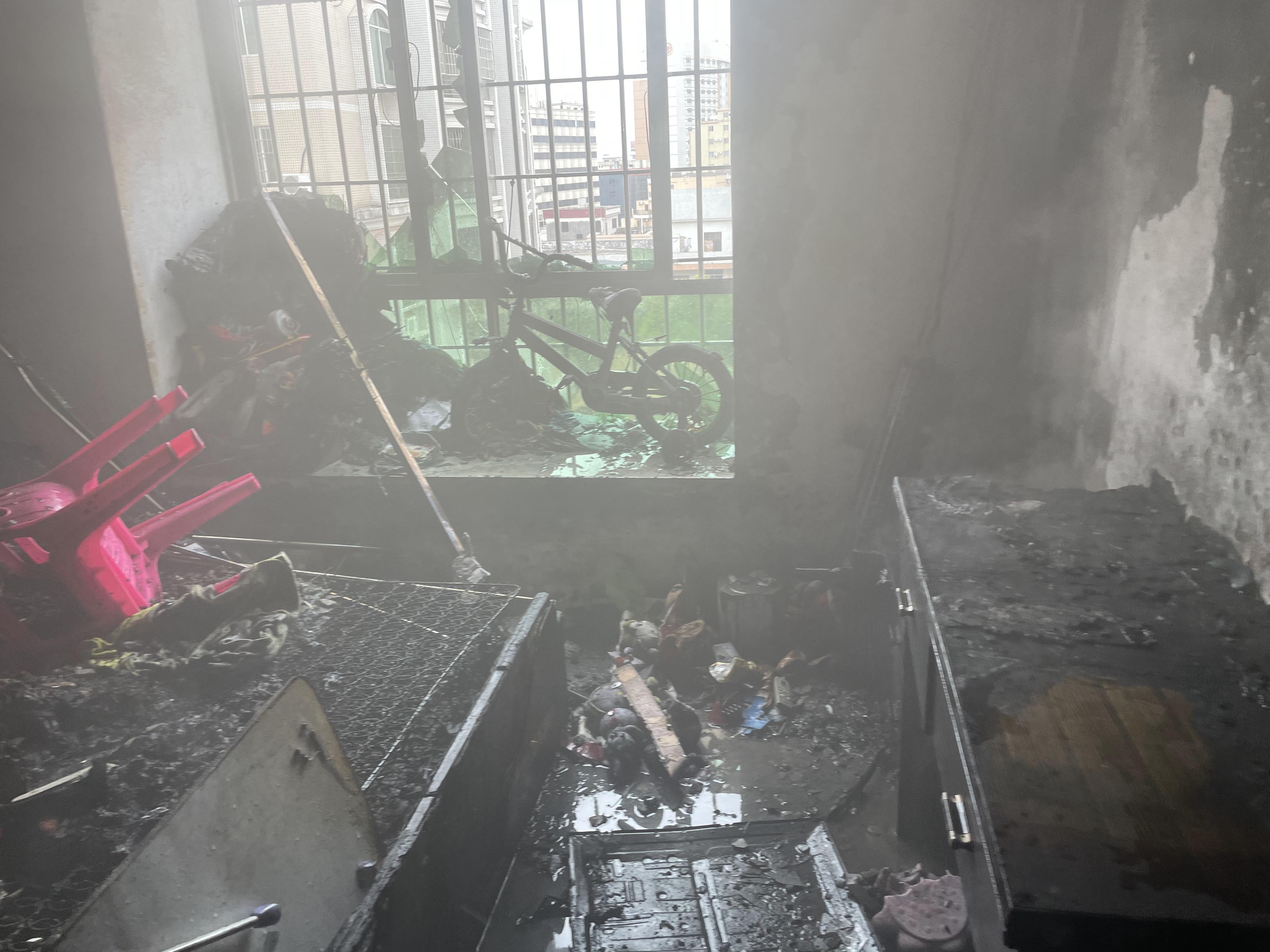 经过15分钟左右的紧张救援,屋内的明火被成功扑灭。据现场消防救援人员勘查,屋内着火物主要为床、电视、被褥等物品,着火面积为10平方米。起火原因初步调查为家用电器线路短路所致。
