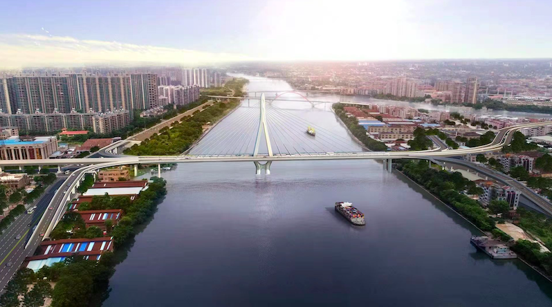 广佛大桥系统工程将划分为两阶段实施。第一阶段工程为连接佛山南海和大坦沙岛的白沙河大桥,第二阶段工程为连接大坦沙岛和增槎路立交部分。大桥采用单跨独塔斜拉工艺,桥塔造型如双手合十,沐浴在珠江,象征着广佛携手。项目估算总投资11.57亿元,工期三年,预计2023年建成通车。