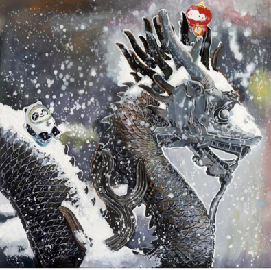 虎年元宵节是冬奥会举办的第十一天,也是“每日一画致敬战疫英雄”行动的752天,舒勇用近20个小时的时间,创作了冰墩墩和雪容融在冰雪中的麒麟上嬉闹的作品。作为中国传统文化的代表之一,“神兽麒麟”寓意了人们对光明、幸福的追求,每天关注奥运健儿们精彩比赛的舒勇,希望用画笔把自己的感受表达出来。