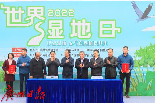 2月18日,第26个世界湿地日广东省宣传活动在广州海珠国家湿地公园举行,今年湿地日的主题是“珍爱湿地——人与自然和谐共生”。活动现场,广东省科学院广州地理研究所与广州海珠国家湿地公园签约共建“粤港澳大湾区城市群生态系统观测研究站”。