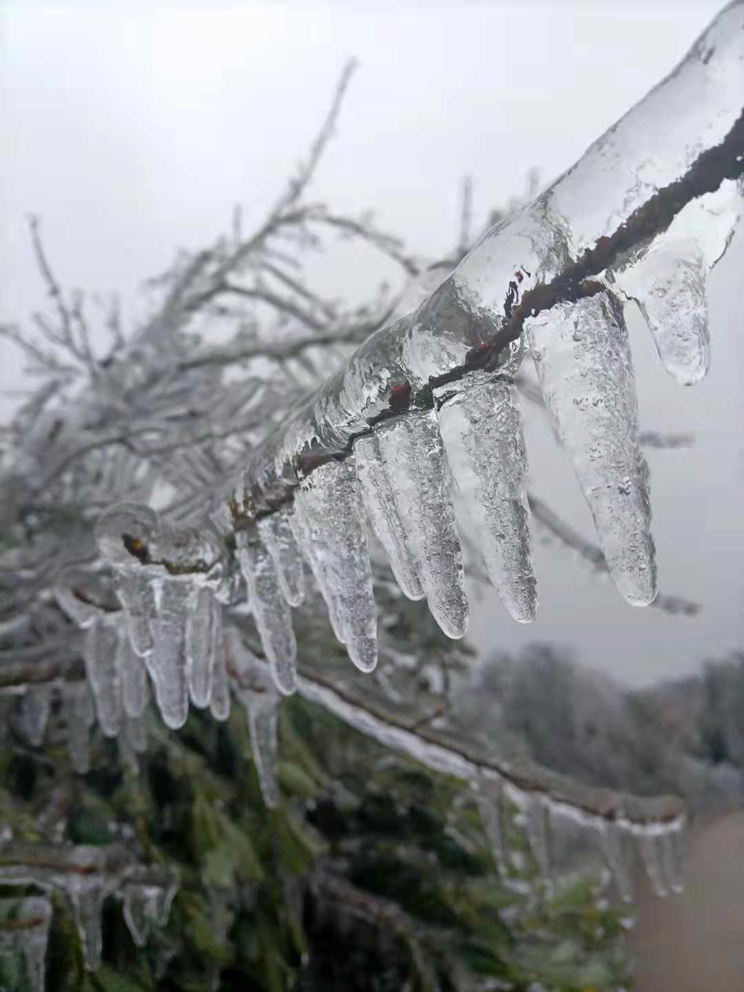 从昨天开始,虎年春节后的第一波寒流自北向南进入广东,经过韶关新丰时,与绵绵春雨一起,把当地高山地区变成了一个冰雪世界。