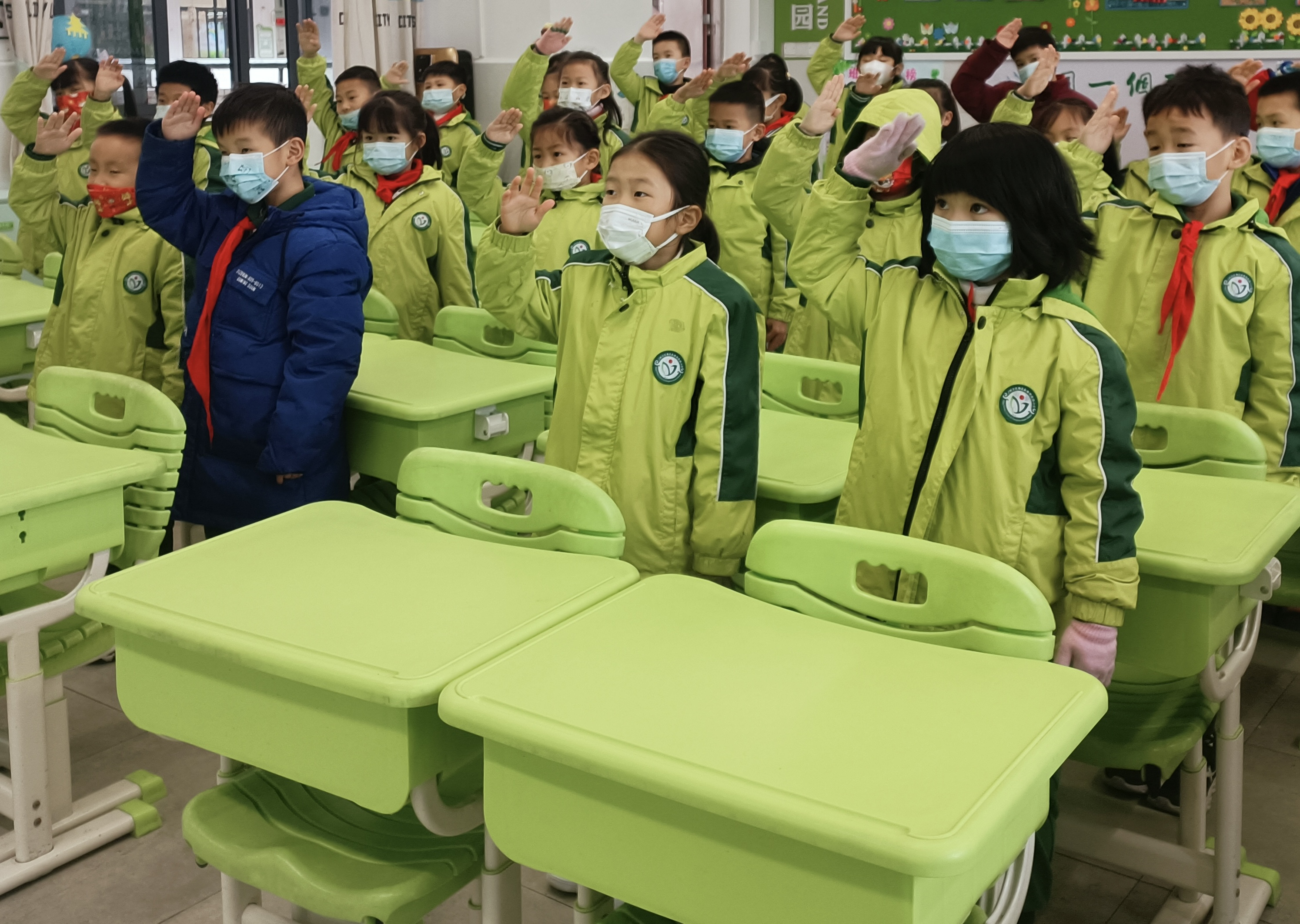康有为纪念小学的“学生一日常规”已有要求,前一天晚上气象台发布寒冷黄色预警信号时,学生在第二天可穿自己的保暖大衣回校。学校也提前通知了家长。