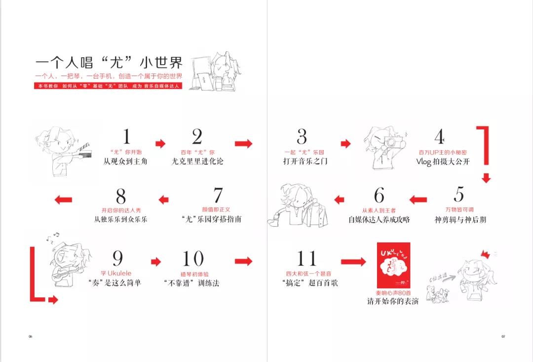 除了拥有尤克里里演奏技法教学与流行曲集的常规内容之外,本书还是一本教你如何在自媒体时代找到自我定位,快速成为达人网红的指南书。作者团队擅长采用简单出彩的编曲、图文并茂的形式感,来激发读者对音乐的兴趣,并参与到精心设计的网络社交互动环节。