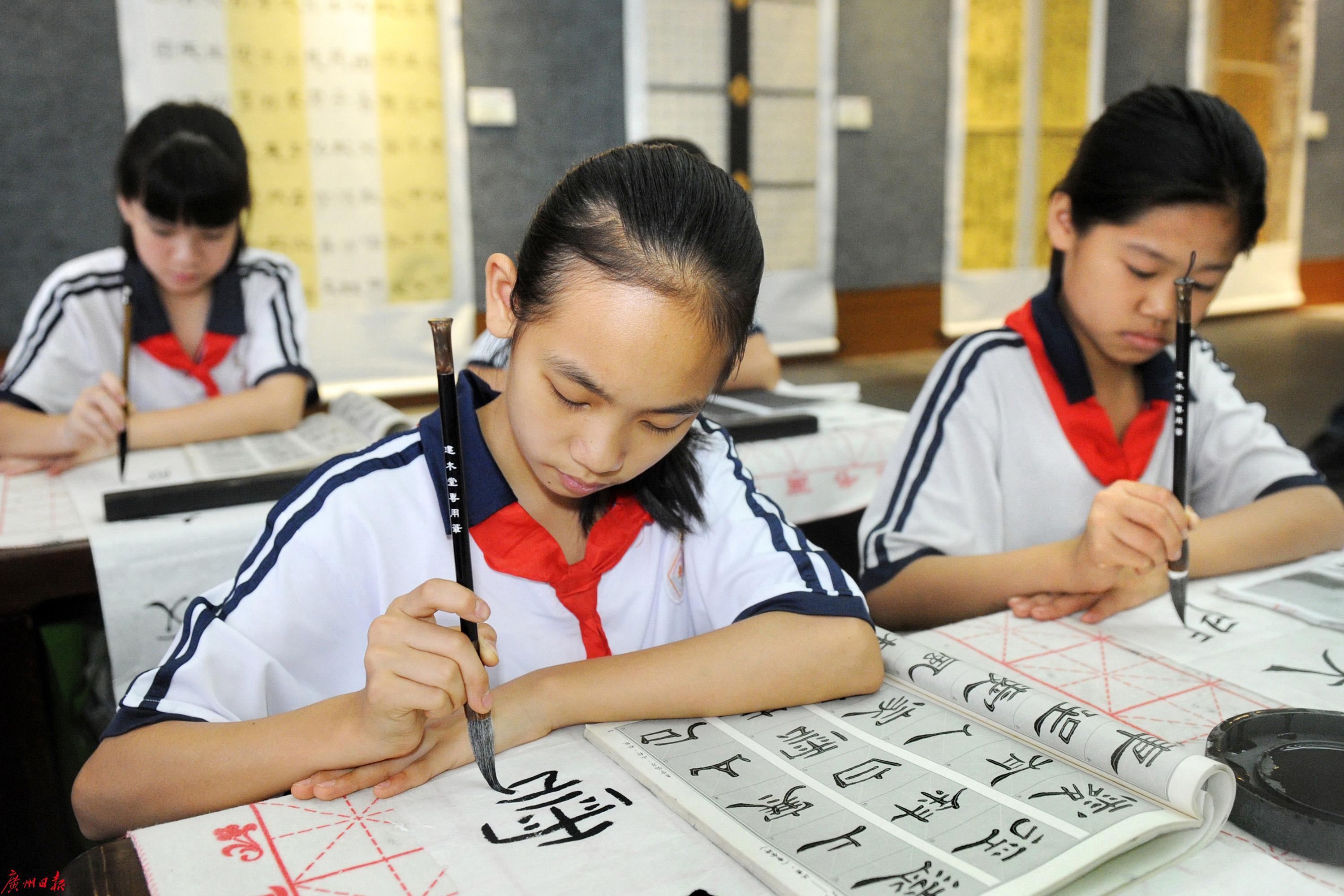 深入推进“天河优教行动”,图为天河区学生练习书法。 莫伟浓摄