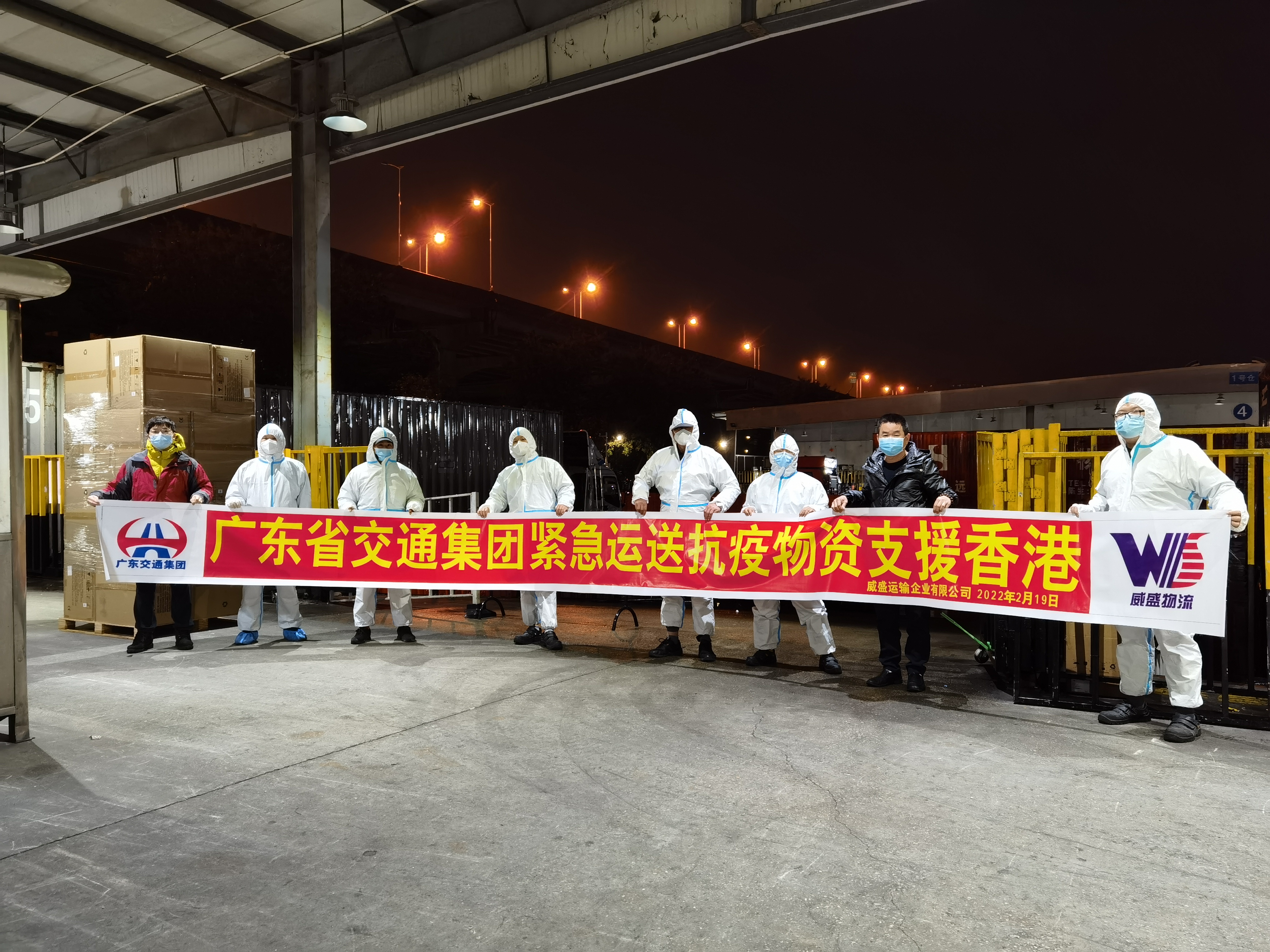 2月19日,廣東交通集團駐港企業威盛運輸企業有限公司內電話響個不停,有多批防疫物資需用跨境運輸車輛急送香港。威盛公司聞令而動,火速調集所屬廣發公司和順發公司運力,冒雨集結,日夜通宵作業。當天,30多車大集裝箱緊急物資已送達香港各集散倉儲地。2月20日,還繼續運送近100車緊急物資。目前,核酸測試盒、口罩等防疫物資正在爭分奪秒馳援香港。
