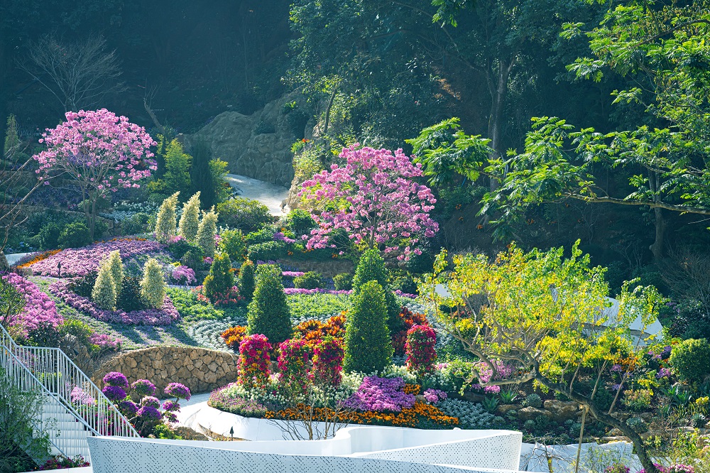 在广州以西,一年一度的佛山西樵山桃花盛会正式上线。走进桃花园,眼睛就离不开这百亩桃花林。除了桃花之外,西樵山还有百亩茶花园正值花期。每年冬末春初之际,茶花艳丽的花朵总会给人带来春的气息。顺德的岭南和园景区在元宵节后引入近5000株不同品种绣球花,并在2月底前完成栽培。每年3-4月是绣球花的最佳观赏期,从漪澜亭到泛若舫的小路两旁将盛开大片绣球花海,红、蓝、绿、紫等五彩斑斓的绣球花一朵胜一朵娇艳、一丛胜一丛热烈,游客可在3-4月前往打卡、拍照、赏花。