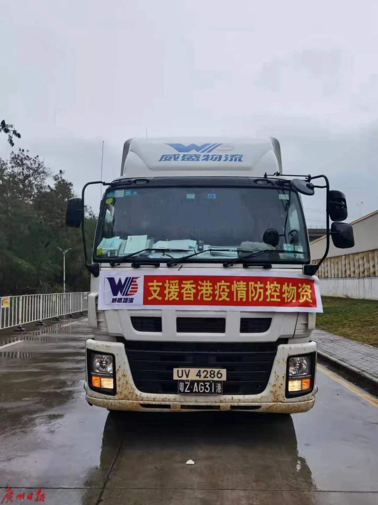 2月19日,廣東交通集團駐港企業威盛運輸企業有限公司內電話響個不停,有多批防疫物資需用跨境運輸車輛急送香港。威盛公司聞令而動,火速調集所屬廣發公司和順發公司運力,冒雨集結,日夜通宵作業。當天,30多車大集裝箱緊急物資已送達香港各集散倉儲地。2月20日,還繼續運送近100車緊急物資。目前,核酸檢測試劑盒、口罩等防疫物資正爭分奪秒馳援香港。