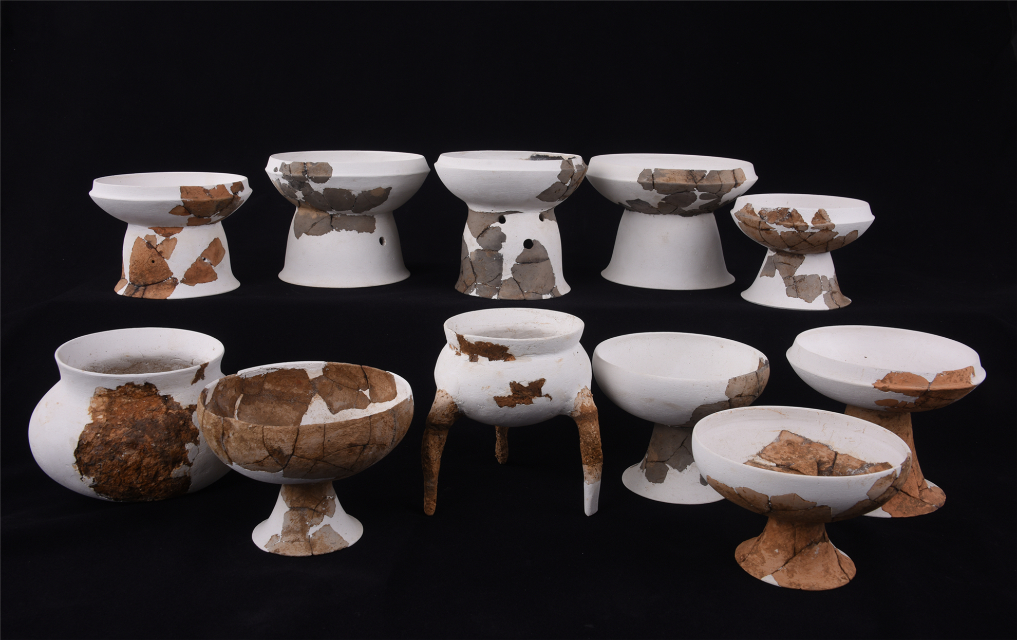 刘锁强介绍:“3年来,我们主要发掘岩山寨遗址里的墓葬区。在这里,我们发现了高等级墓葬,也有平民墓,这表明当时已经出现明显的贫富悬殊和社会阶层分化。从墓葬出土的陶器来讲,当时陶器生产已比较发达,器物的种类也非常丰富,主要有鼎、豆、盘、壶、釜和罐等等,有用来炊煮的、也用来做餐具的、用作饮水的,还有用于储物的。比较大的陶器直径有四五十公分。在岩山寨的高等级墓葬中,还出土了玉礼器,玉器的形制、工艺和良渚文化所用的玉器非常相似。此外,考古人员还通过浮选法在遗址中发现了碳化的水稻,这些水稻的年代我们已送去北大的相关实验室进行检测。”