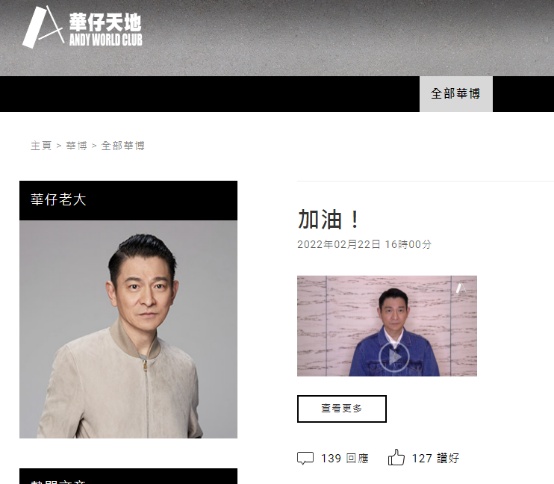 劉德華的粉絲官網「華仔天地」截圖