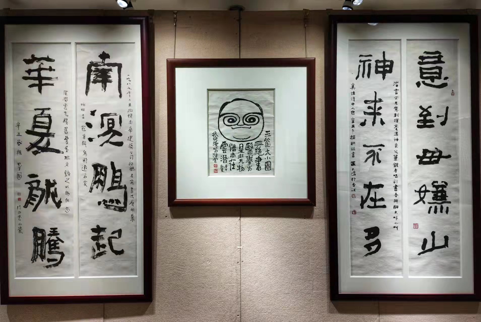 从本次展出作品可见,区潜云书法植根于性情天分, 其学不主一家,不拘一法,博采众长,归于一心,更对医学、易学、武学均能深造自得融于书法。 区潜云自学书法从草书入手,又临习钟繇、褚遂良诸帖,后学篆隶行诸体。尤擅草书,颇受王铎、彭睿壦的影响,书风雄直奇肆,变化灵动而有稚拙之意,极具特色。