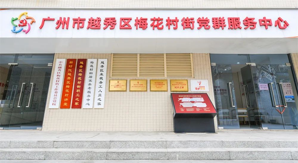 梅花村街党群服务中心位于越秀区杨箕雄镇大街20号一、二层,占地面积约2000平方米,中心以“凝心聚力、服务党群”为宗旨,设有党员服务中心(含“两代表一委员”工作室)、街党校、居家养老服务中心、职工之家、户外劳动者爱心驿站、来穗务工人员之家、文体服务中心(含文化站、书画室、舞蹈室)、杨箕社区居委会等多个阵地,面向辖区党员群众提供党务、政务、居家养老、来穗人员、群团、文化、智库等7大“一站式”服务功能。