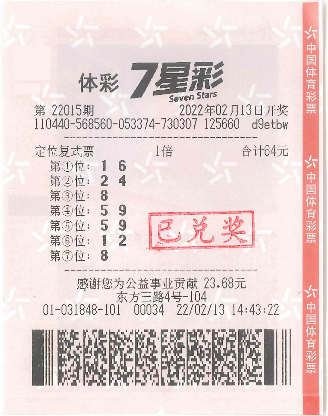 2月13日,中国体育彩票7星彩第22015期开奖,全国共中出3注500万元一等奖,广东开出“并蒂莲”,广州、深圳各得其一,这是广东体彩2022年首次中得7星彩的头奖。