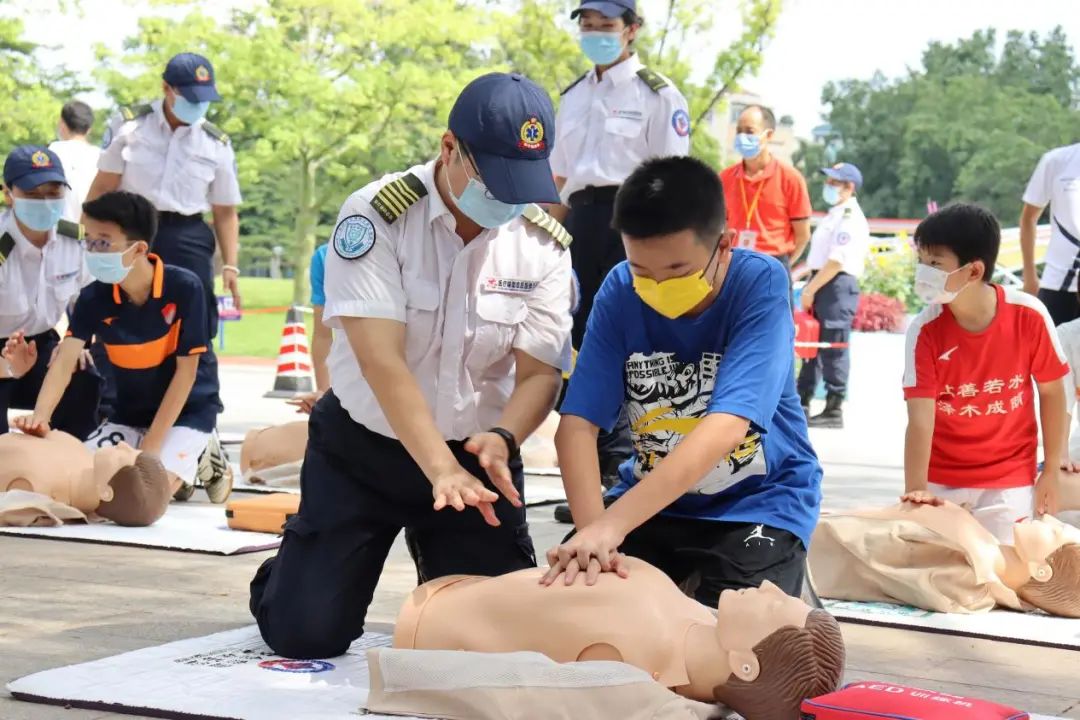 在培训师的指导下,参与活动的群众通过对“模拟人”实施心脏复苏抢救实操,掌握相关操作要点。