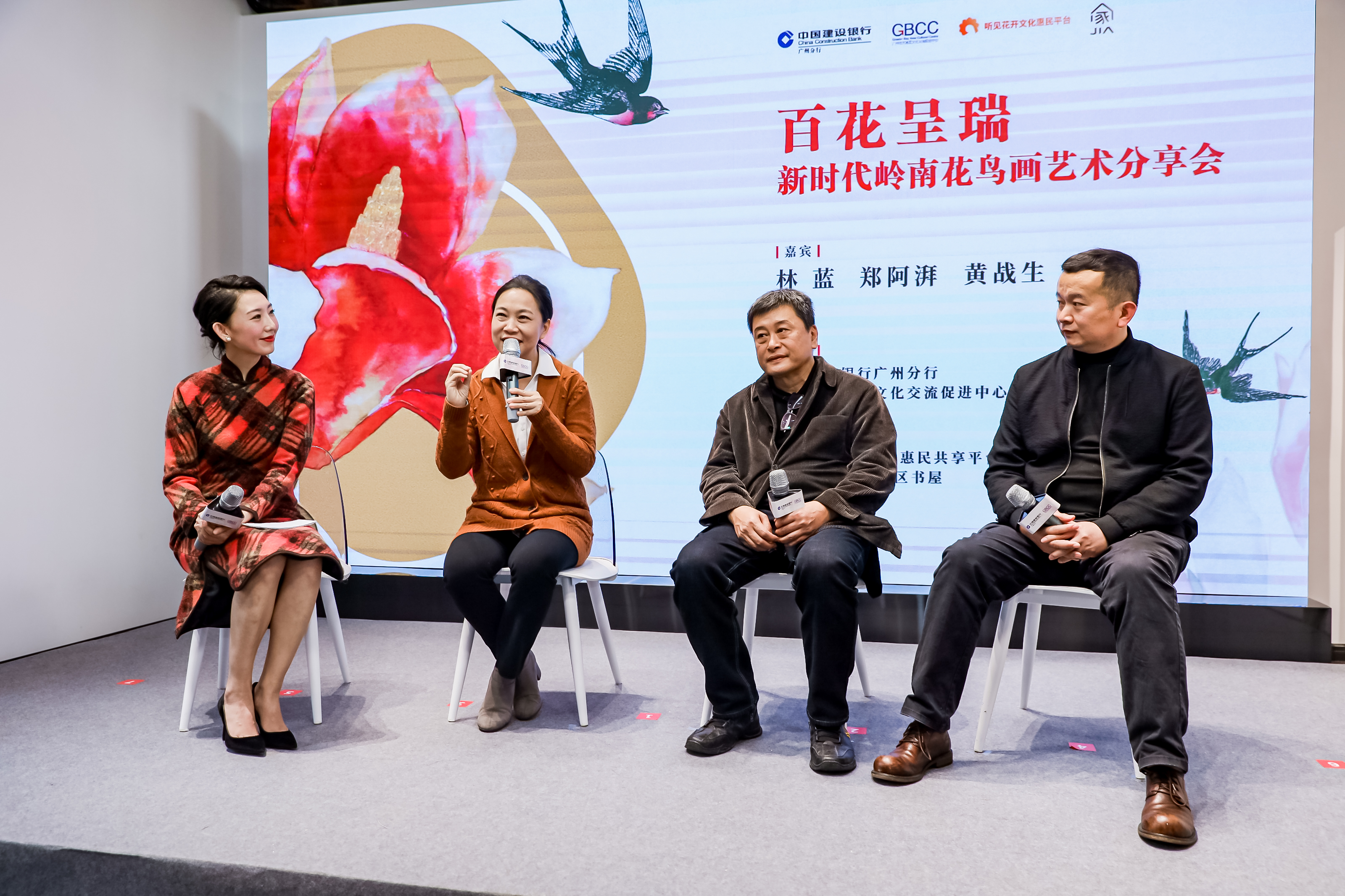 2月27日下午,“听见花开——新春花鸟画展”在珠江公园湾区书屋开幕。展览由“听见花开”文化惠民平台和湾区书屋举办,展出广东画院院长林蓝、广东画院副院长郑阿湃、洛克南方美术馆馆长黄战生、广东画院专职画家杜宁四位花鸟画名家的艺术精品。