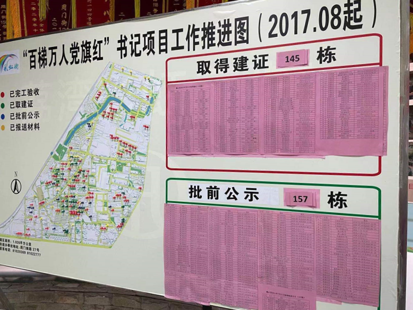 “百梯万人党旗红”旧楼宇加装电梯书记项目建设进展公示。