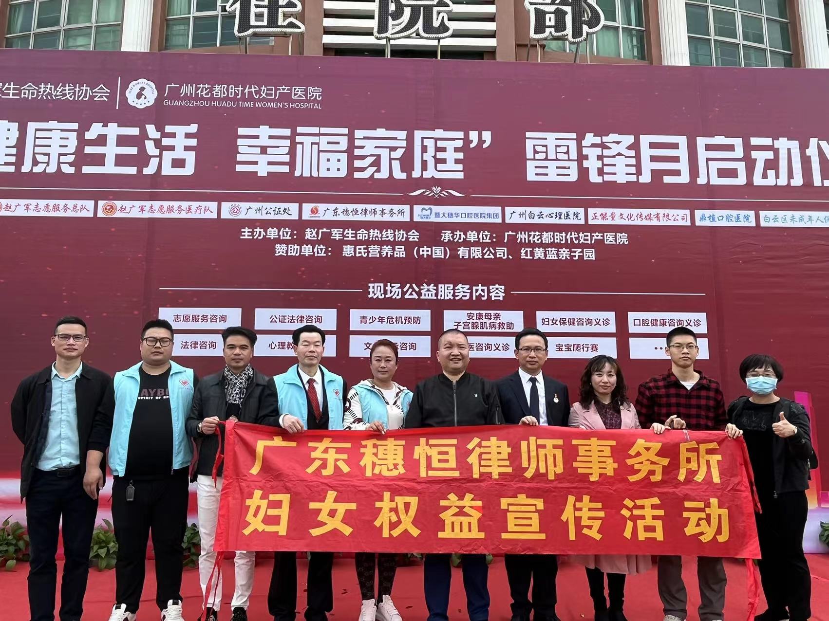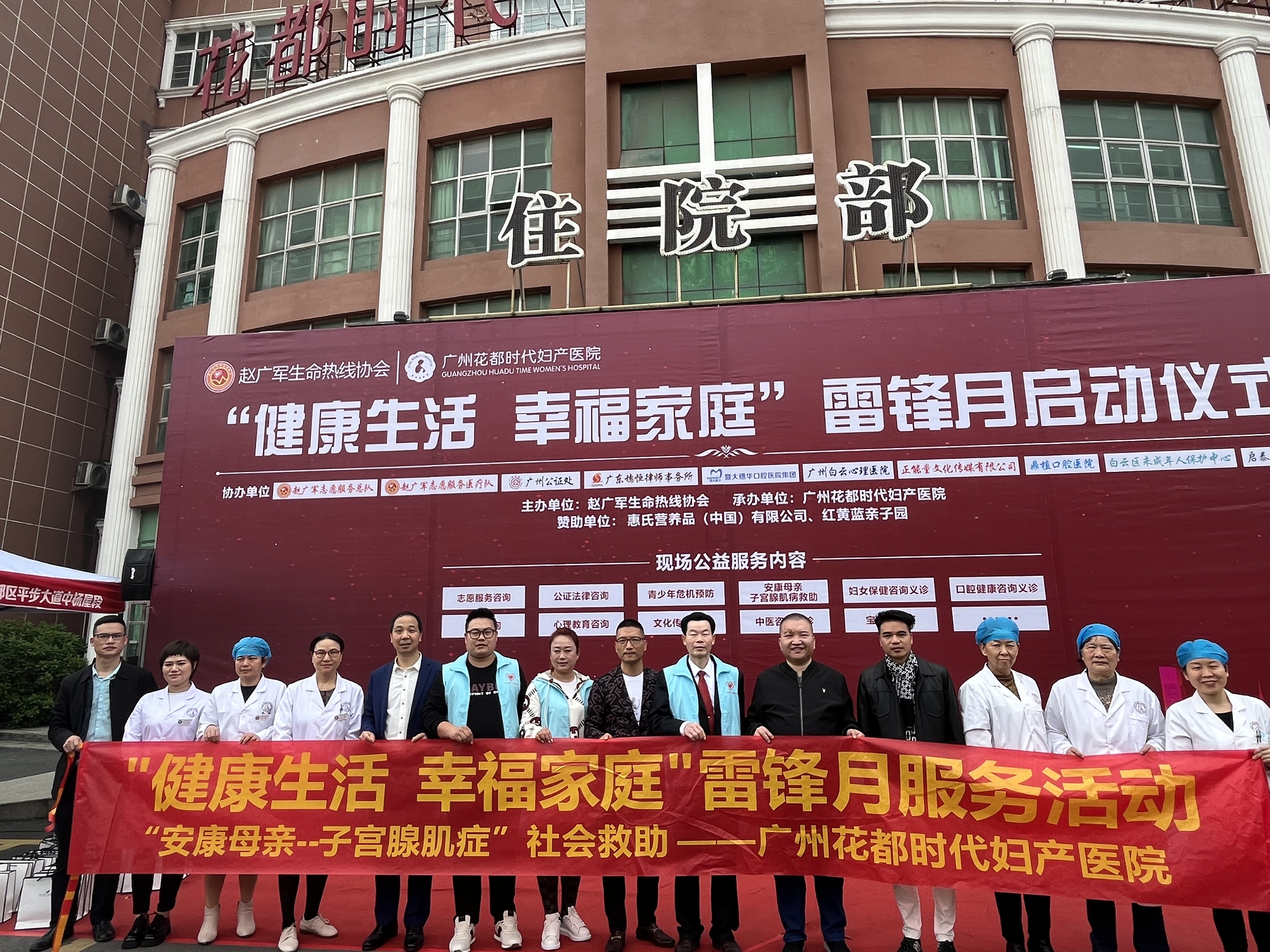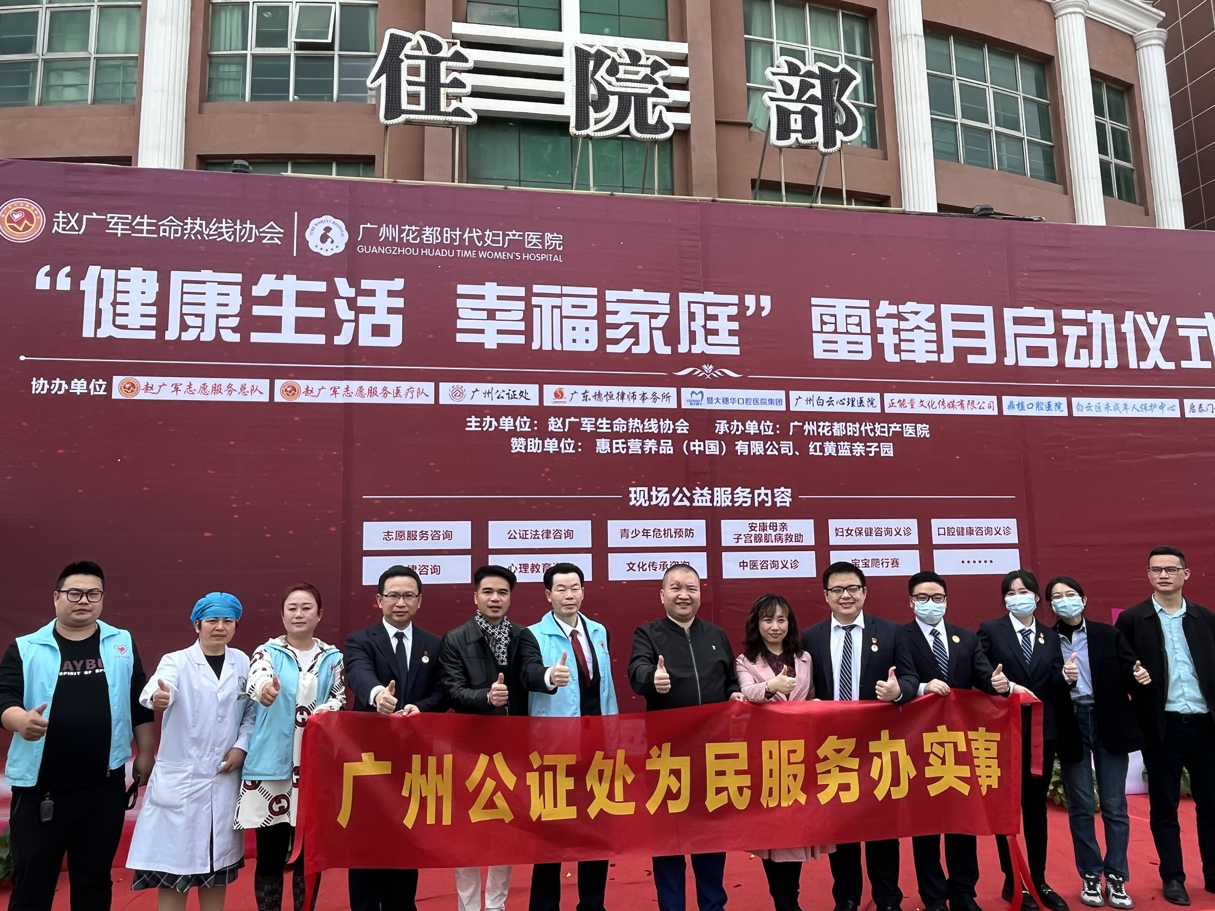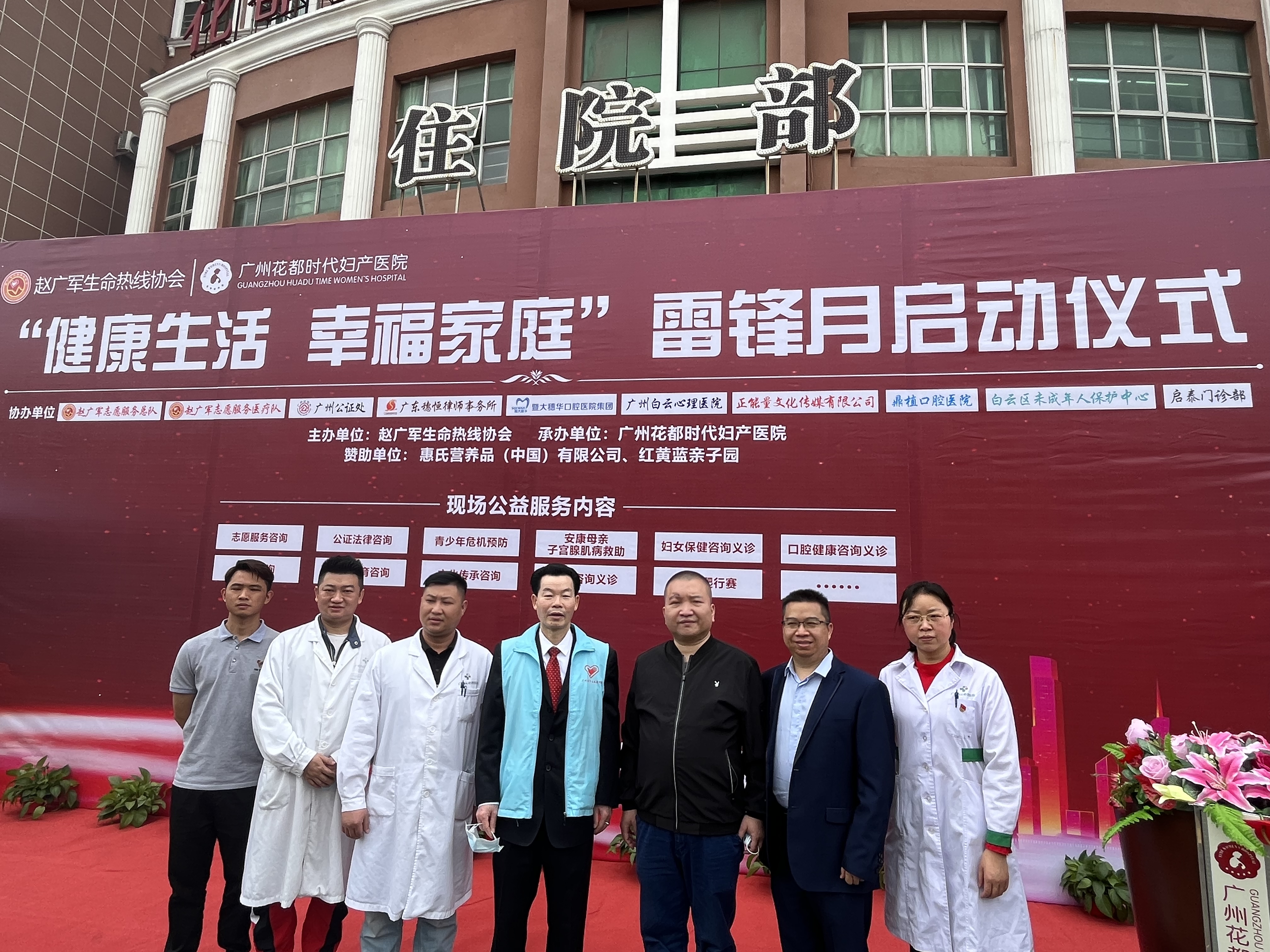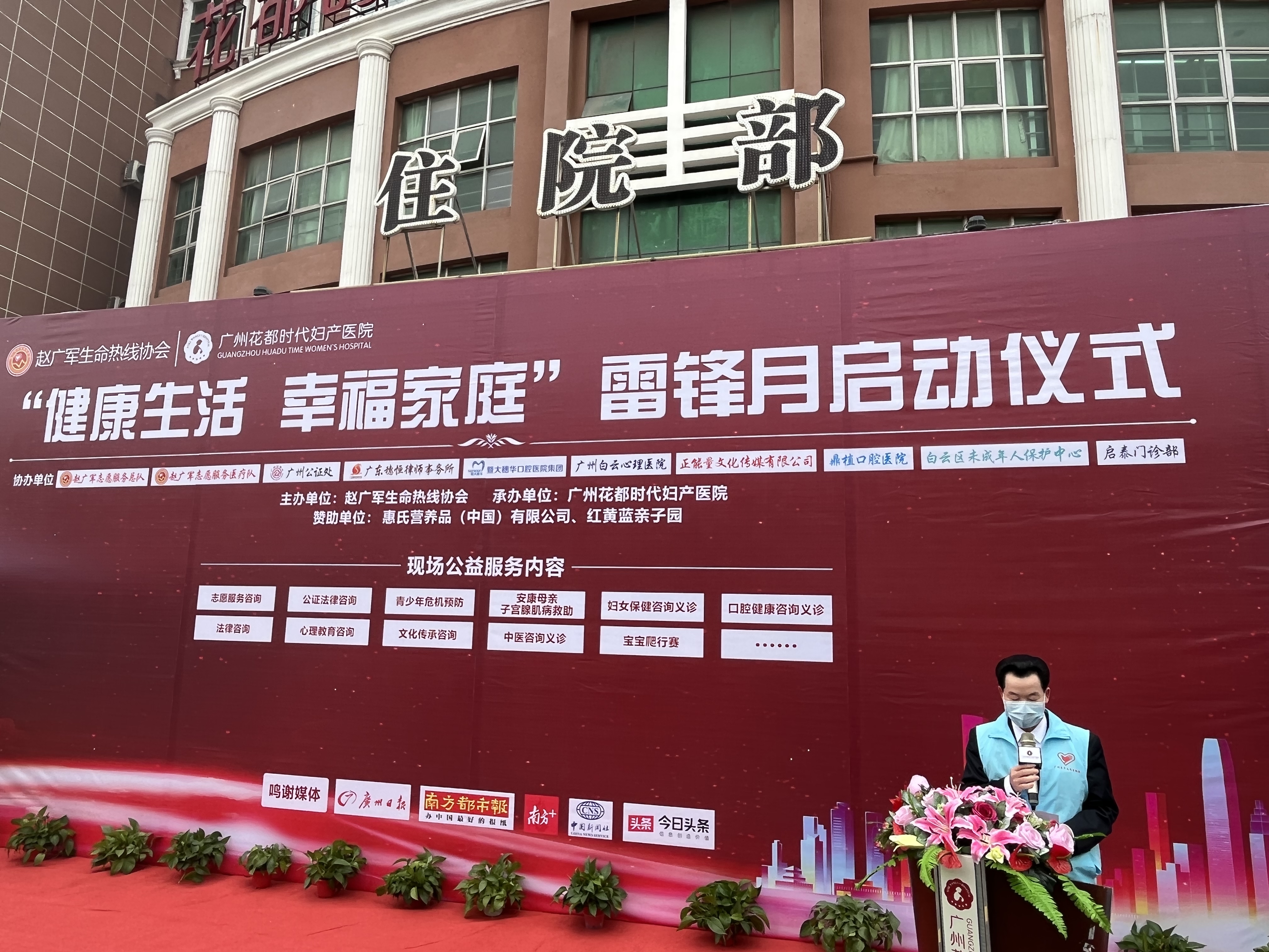 羊城三月,春意盎然。广东第五个学雷锋全民志愿服务行动月也随之到来。2022年3月5日是“学雷锋”59周年纪念日,也是第11个“广州志愿者行动日”。3月1日上午,由赵广军生命热线协会主办的“健康生活幸福家庭”雷锋月活动启动仪式在广州花都时代妇产医院举行,正式拉开了为期一个月的广州雷锋月公益活动序幕。广东省人大代表、赵广军生命热线协会理事长刘伟全,全国道德模范、赵广军生命热线协会秘书长赵广军,“广东好人”肖金,赵广军生命热线协会常务理事、广州永九美生物科技有限公司董事长刘路平,广州启泰中医门诊主任、院长丁伟强,广州花都时代妇产医院院长林冰,广州花都时代妇产医院腺肌科主任李春霞等和多家单位爱心人士共计100多人参加了启动仪式。