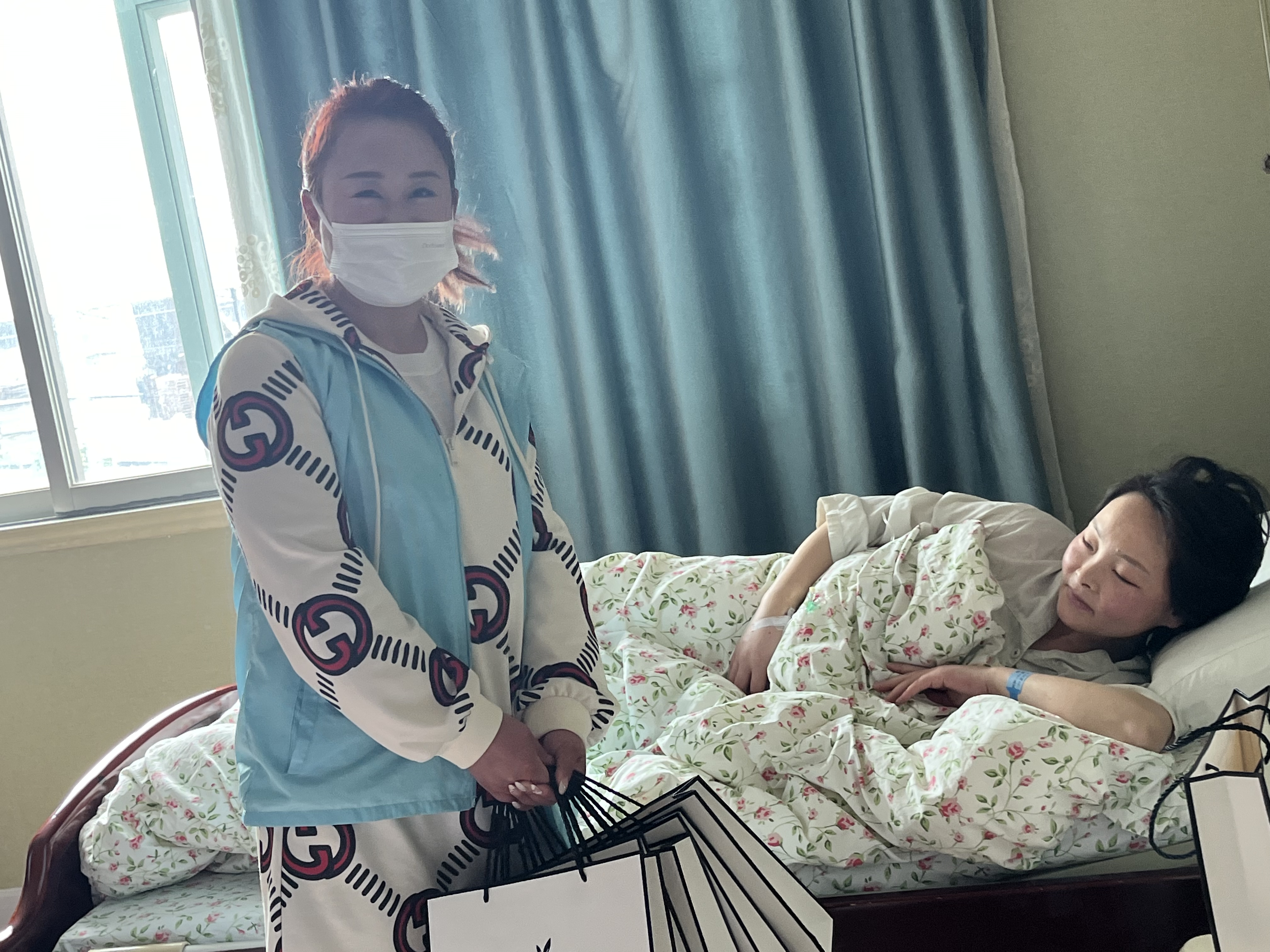 赵广军生命热线协会理事刘宁为住院患者送上慰问品。
