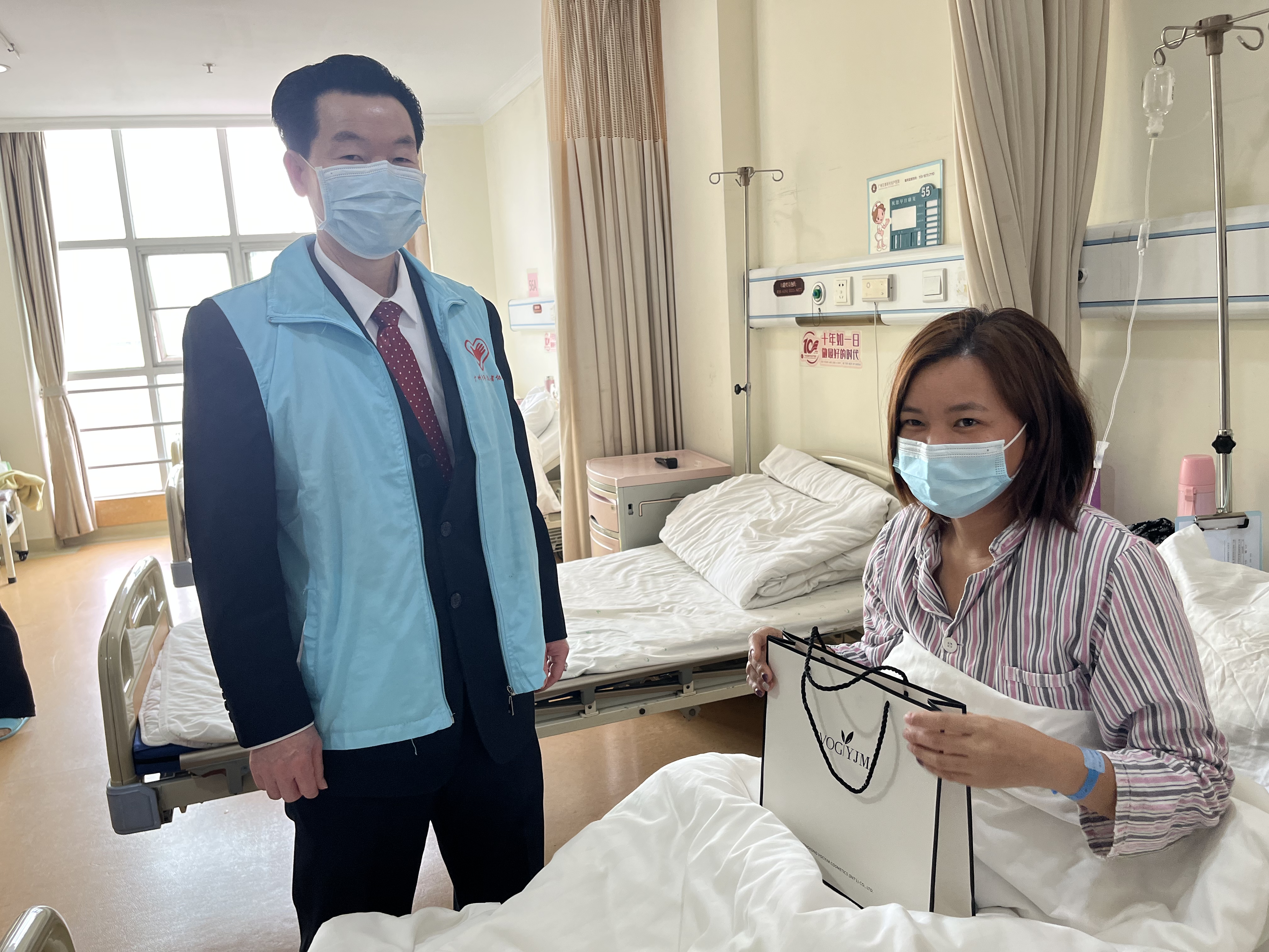 刘伟全前往医院探望患者,并为他们送上慰问品。