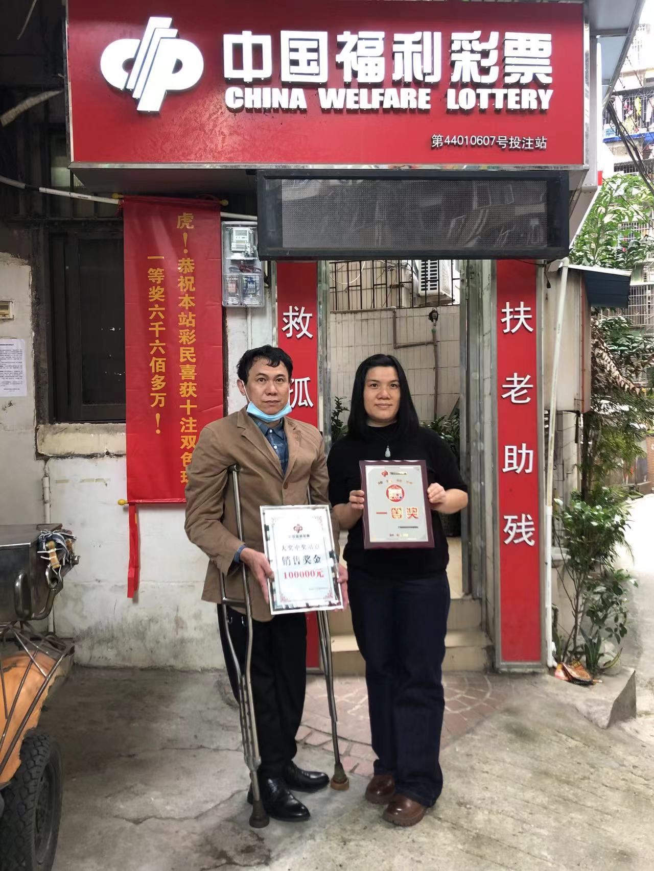 中出大奖后,市福彩中心表彰投注站负责人和销售员
