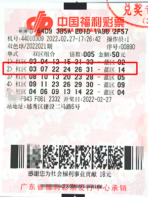 2月27日下午,姜伯外出帮家里买菜,路过44010607站时打下一张双色球彩票,接着走路去到建设新村市场买菜,又在市场旁的44010309投注站打下另一张彩票。随后他返回家中忙家务,并没有留意当晚的开奖结果。