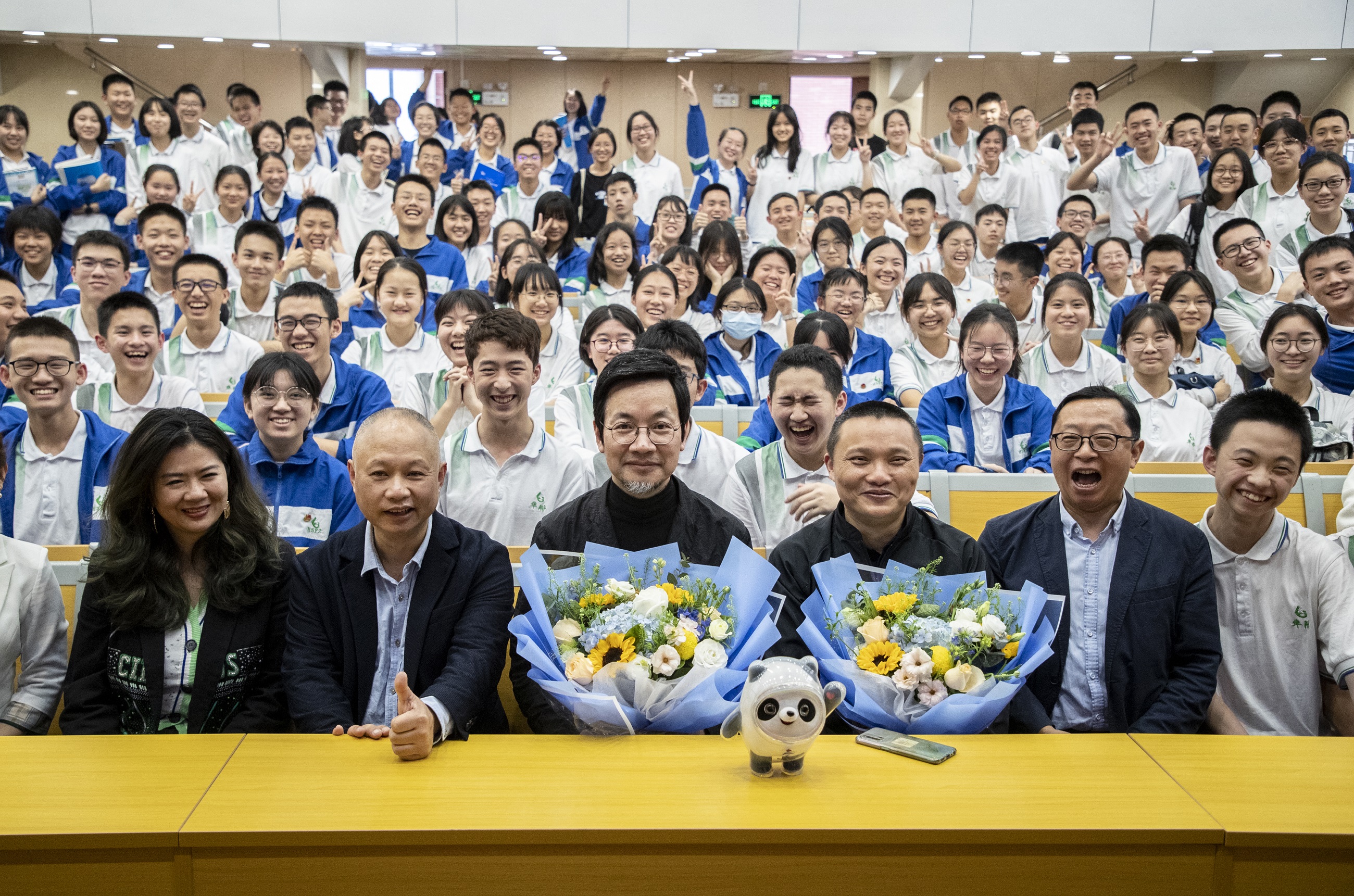 北京2022年冬奥会虽已闭幕,吉祥物冰墩墩热度不减,依然是最受欢迎的“顶流”。3月2日下午,冰墩墩设计团队负责人、广州美术学院视觉艺术设计学院教授曹雪和团队成员、副教授钱磊来到华南师大附中作分享。“大家都觉得冰墩墩是360度无死角的可爱,其实我们确实是无数次旋转它,连鼻子的高度都旋转着进行精心设计,让它的每一个角度都可爱。”曹雪说。
