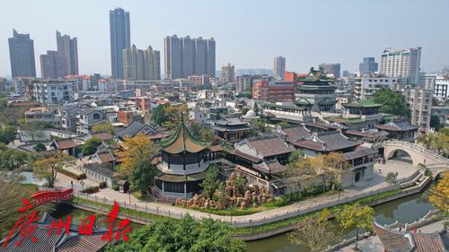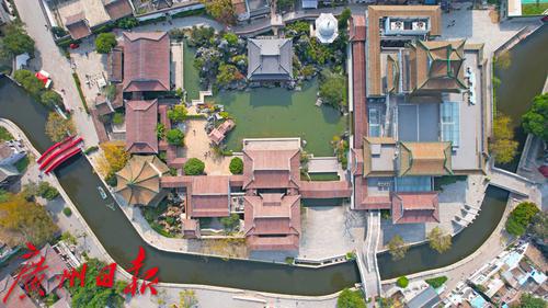粤剧艺术博物馆由岭南园林风格的仿古建筑群组成。