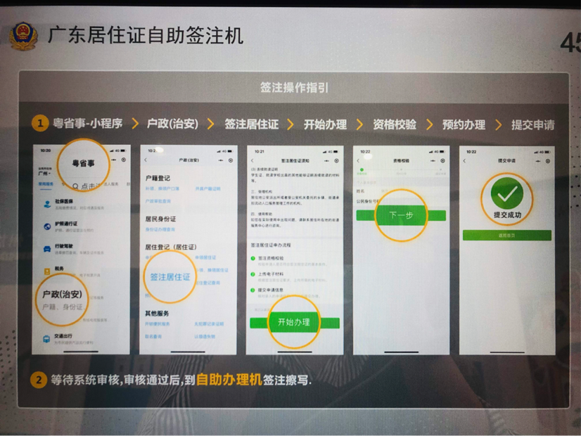 为进一步便利来穗人员“就近办”“自助办”,越秀区政务服务数据管理局在“粤智助”现有服务基础上,联动“越秀人家”小程序,打通线上线下双渠道,实现居民高频业务个性化精准办理。以签注居住证为例,需要续签的市民在“越秀人家”小程序网上申请签注后,无需等待“双向寄递”,在北京路“粤智助•政府服务自助机”即可现场完成办理!